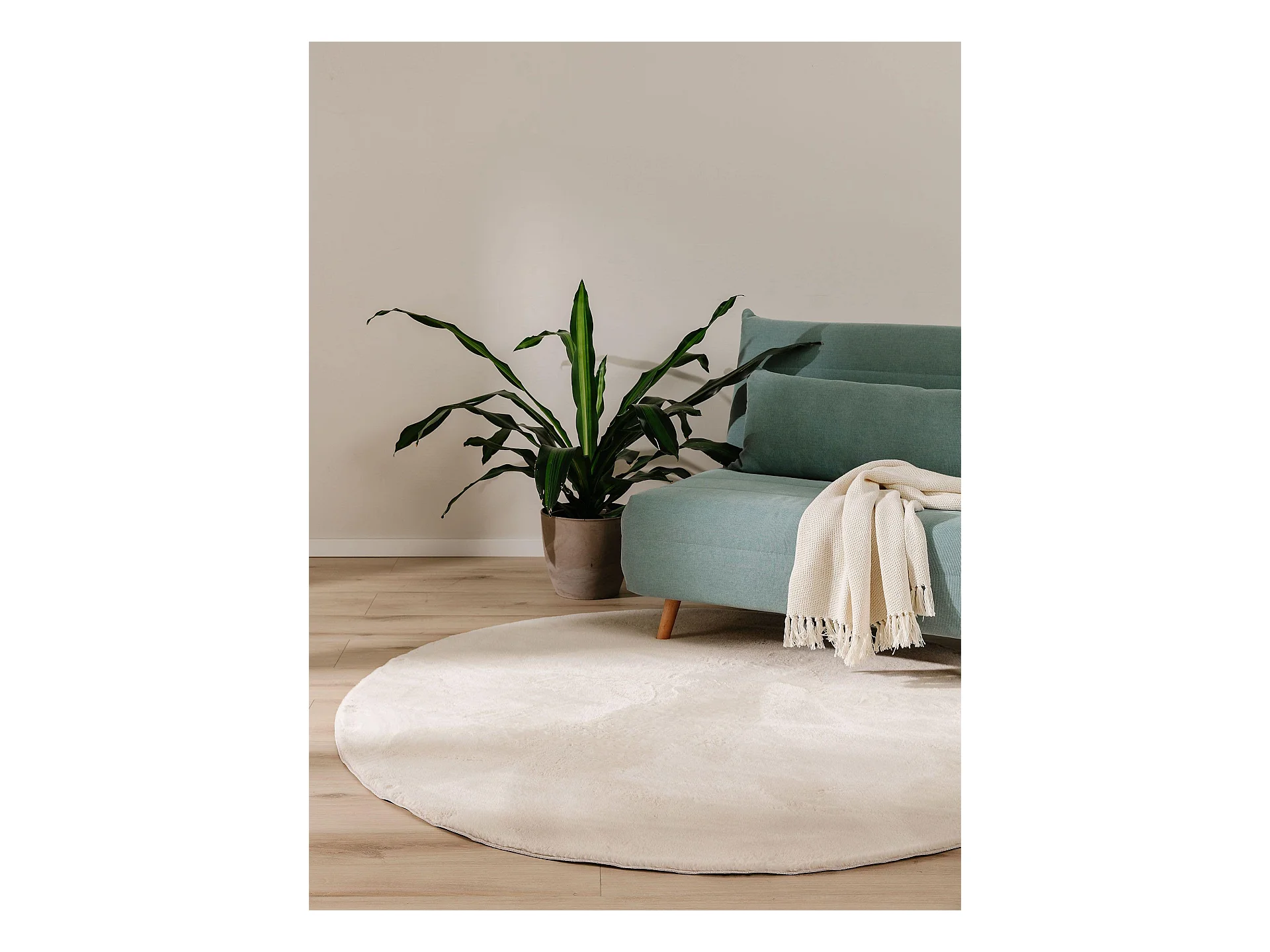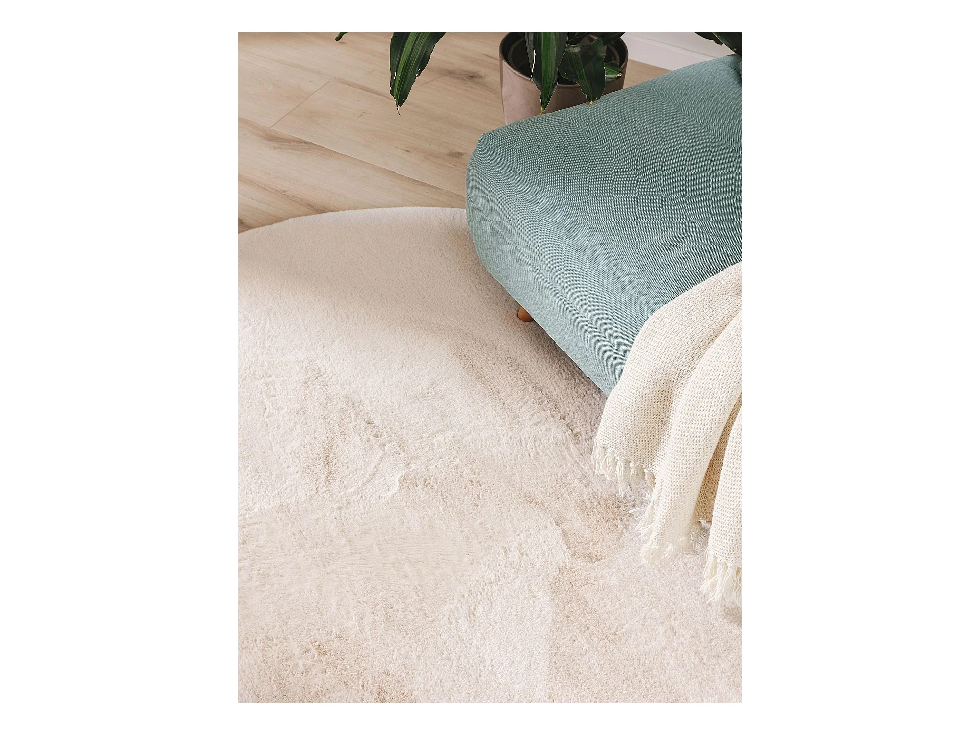 Tapis IZA poils courts style scandinave crème Ø 80cm
