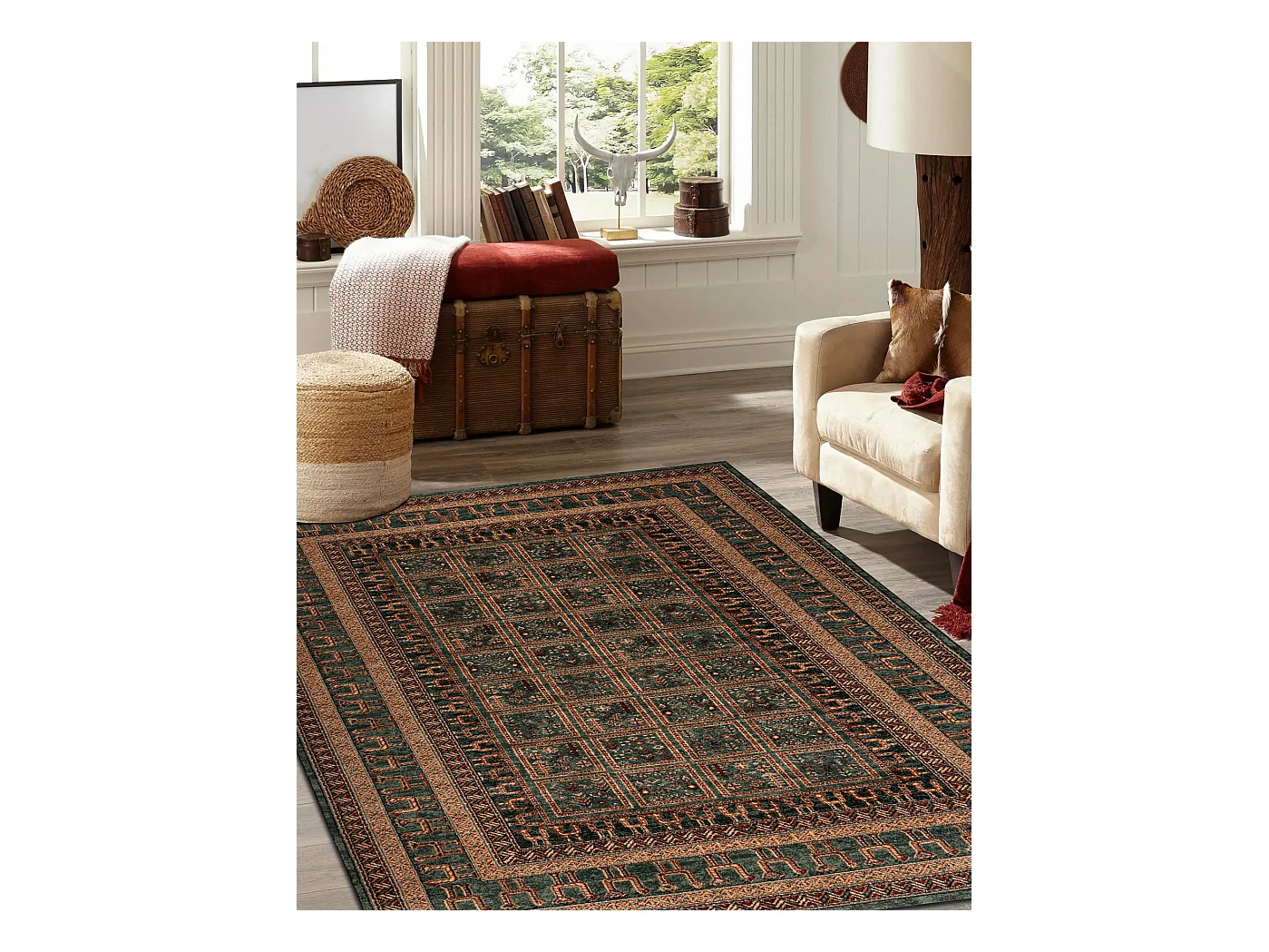 Tapis en laine KASHQAI 4349 400 oriental, cadre vert 200x300 cm