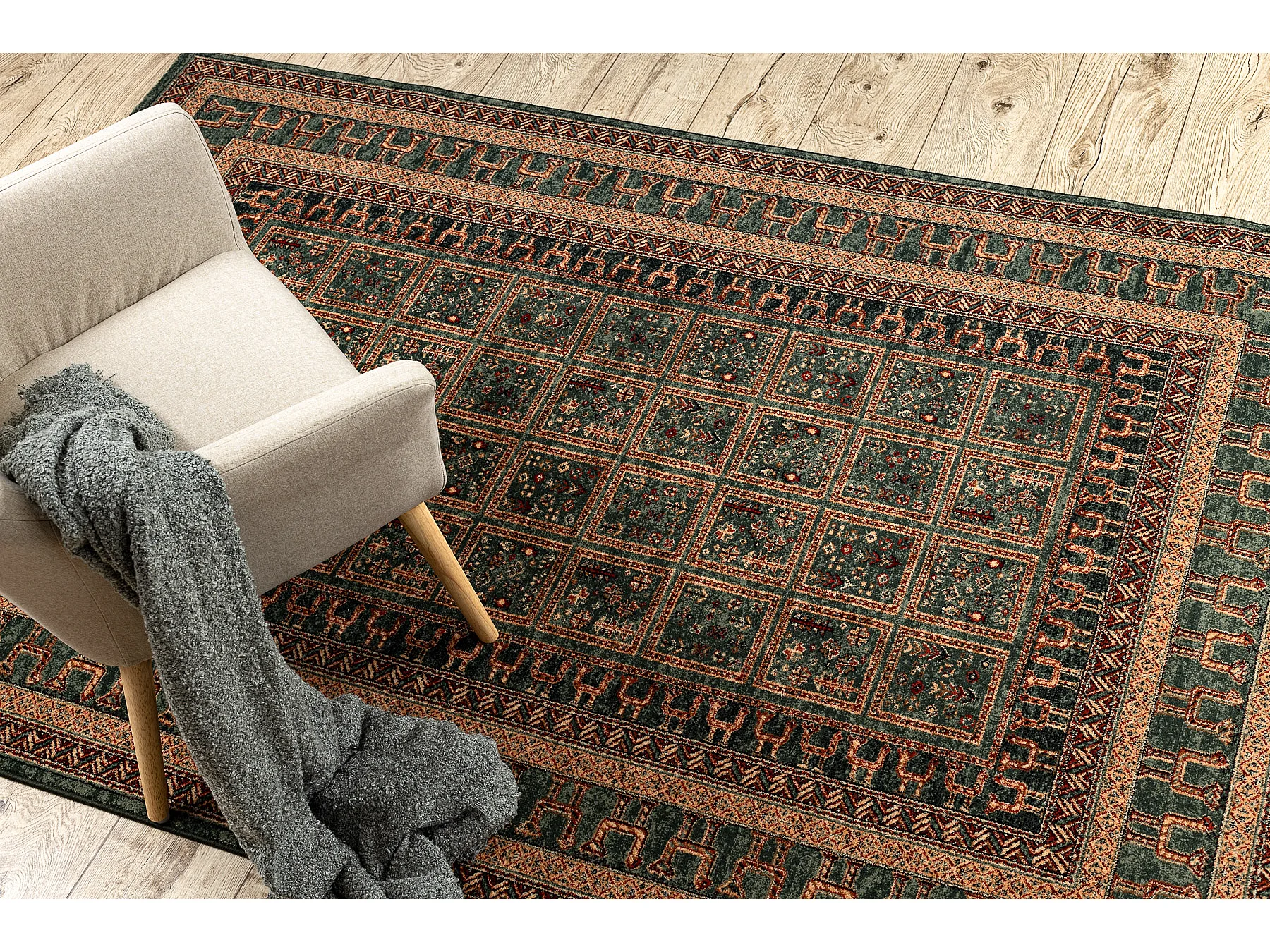 Tapis en laine KASHQAI 4349 400 oriental, cadre vert 240x340 cm