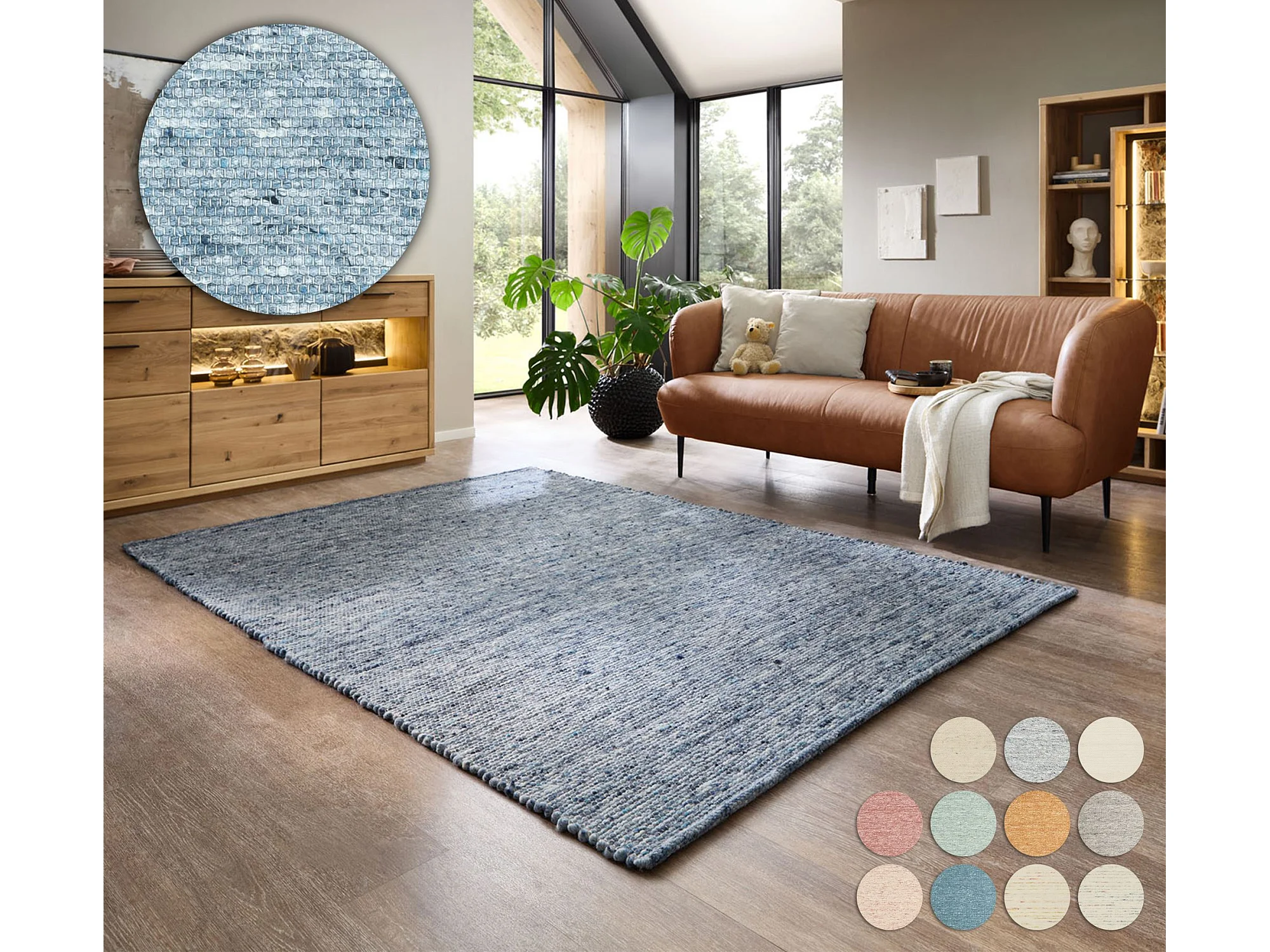 Tapis en laine réversible tissé à la main 140x200 cm bleu Alpen