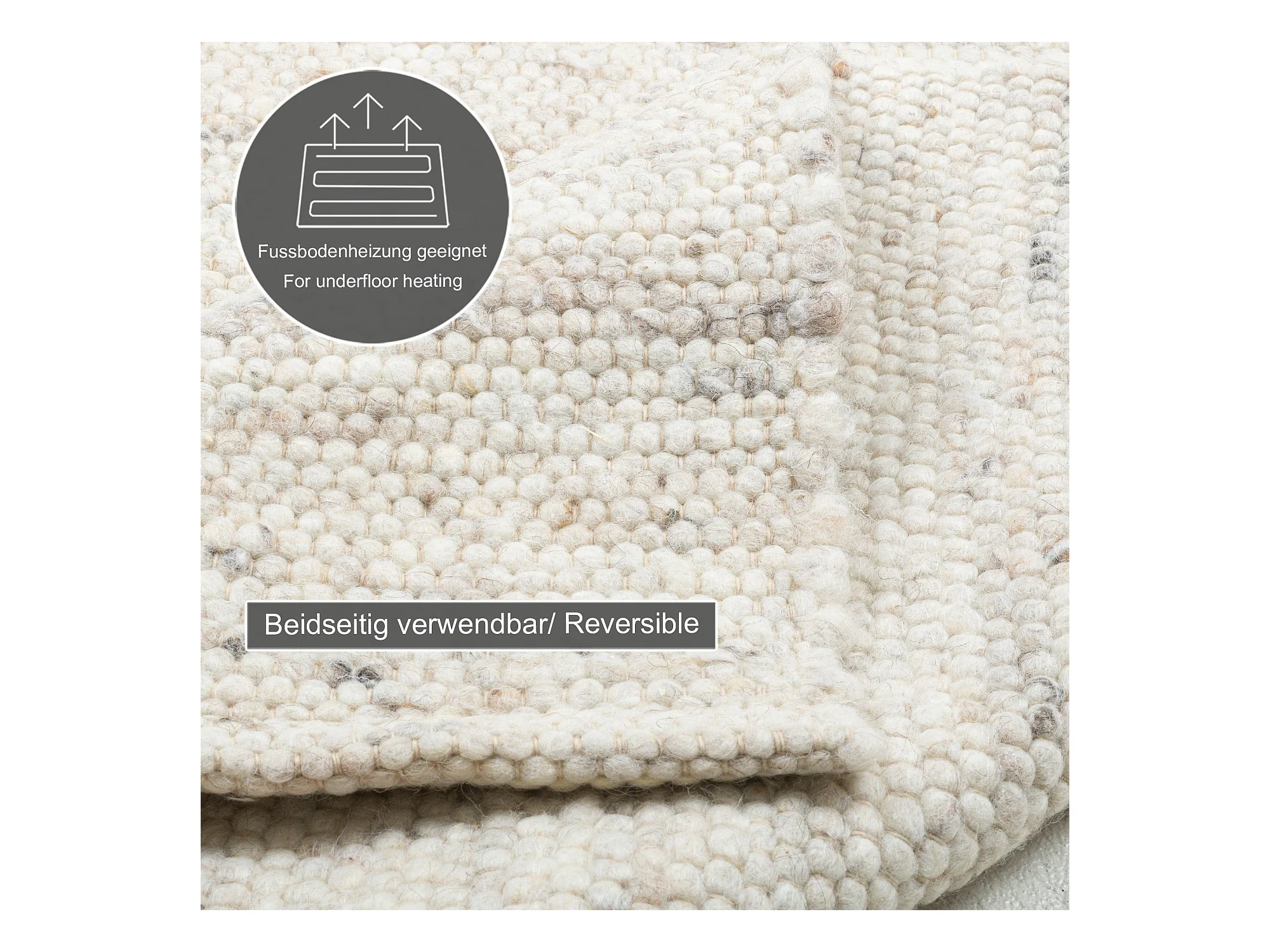 Tapis en laine tissé à la main réversible 60x90 cm natural gris Alm-Glück