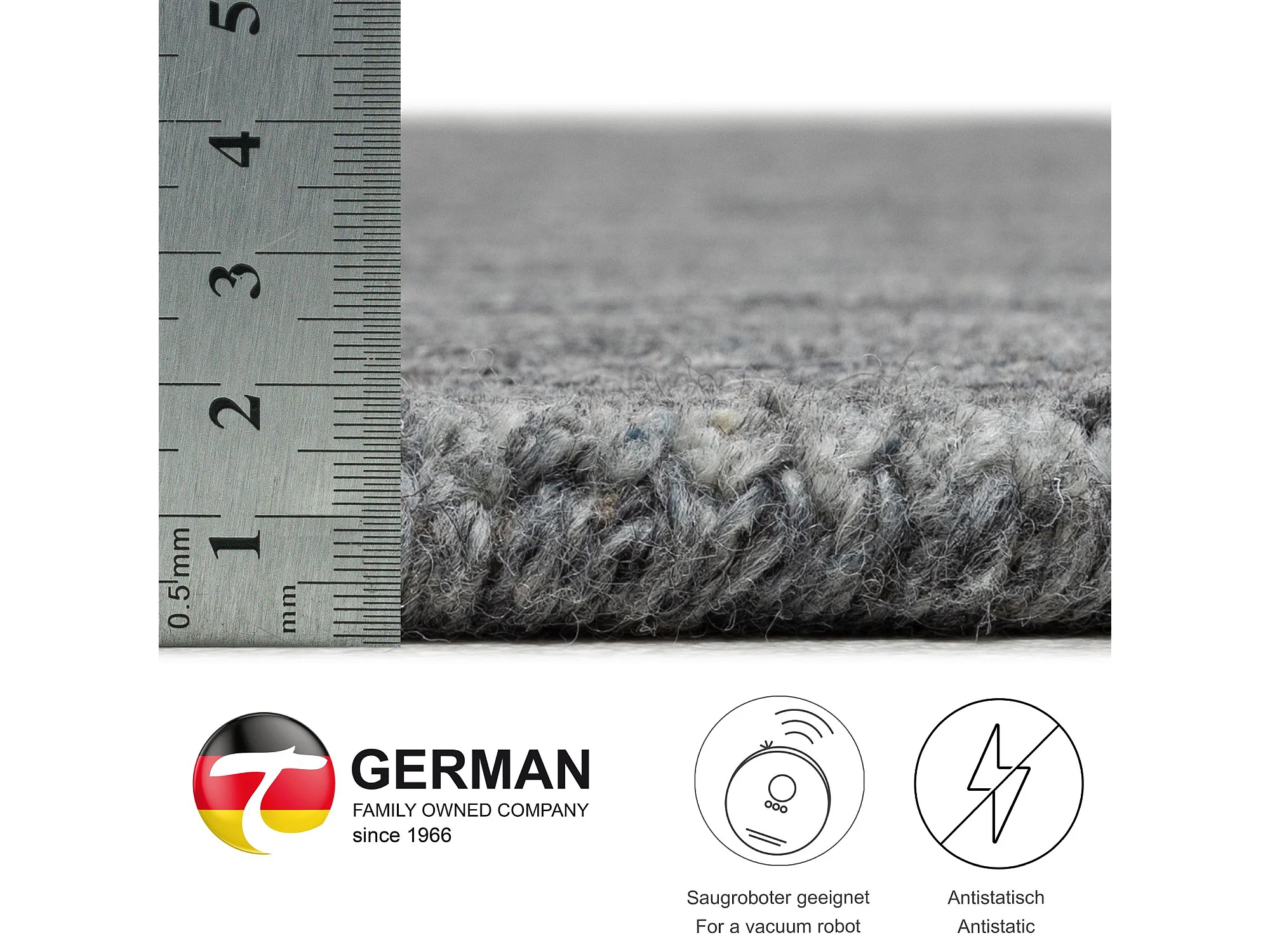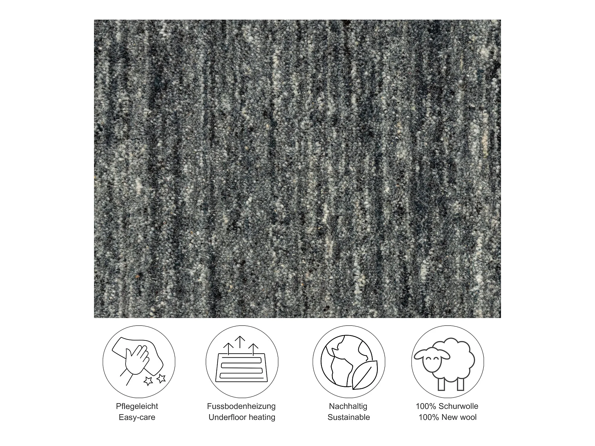 Tapis en laine UNI tissé à la main 100x100 cm anthracite Pure