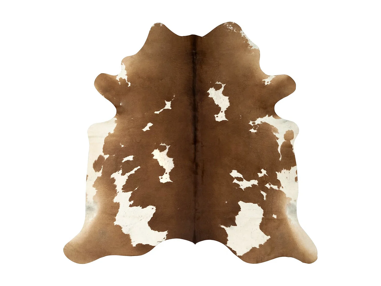 Tapis en peau de vache véritable marron et blanc 180x220 cm