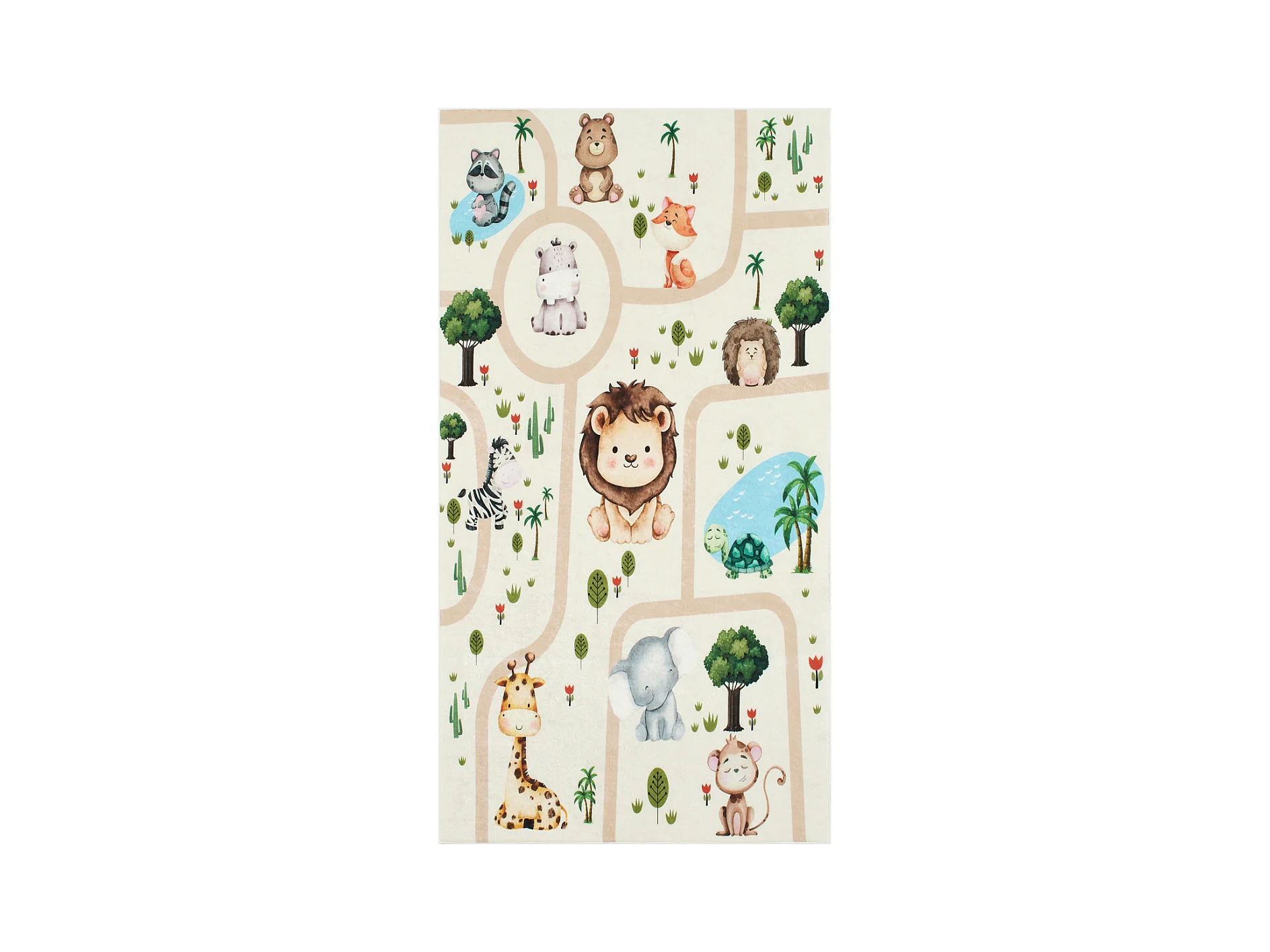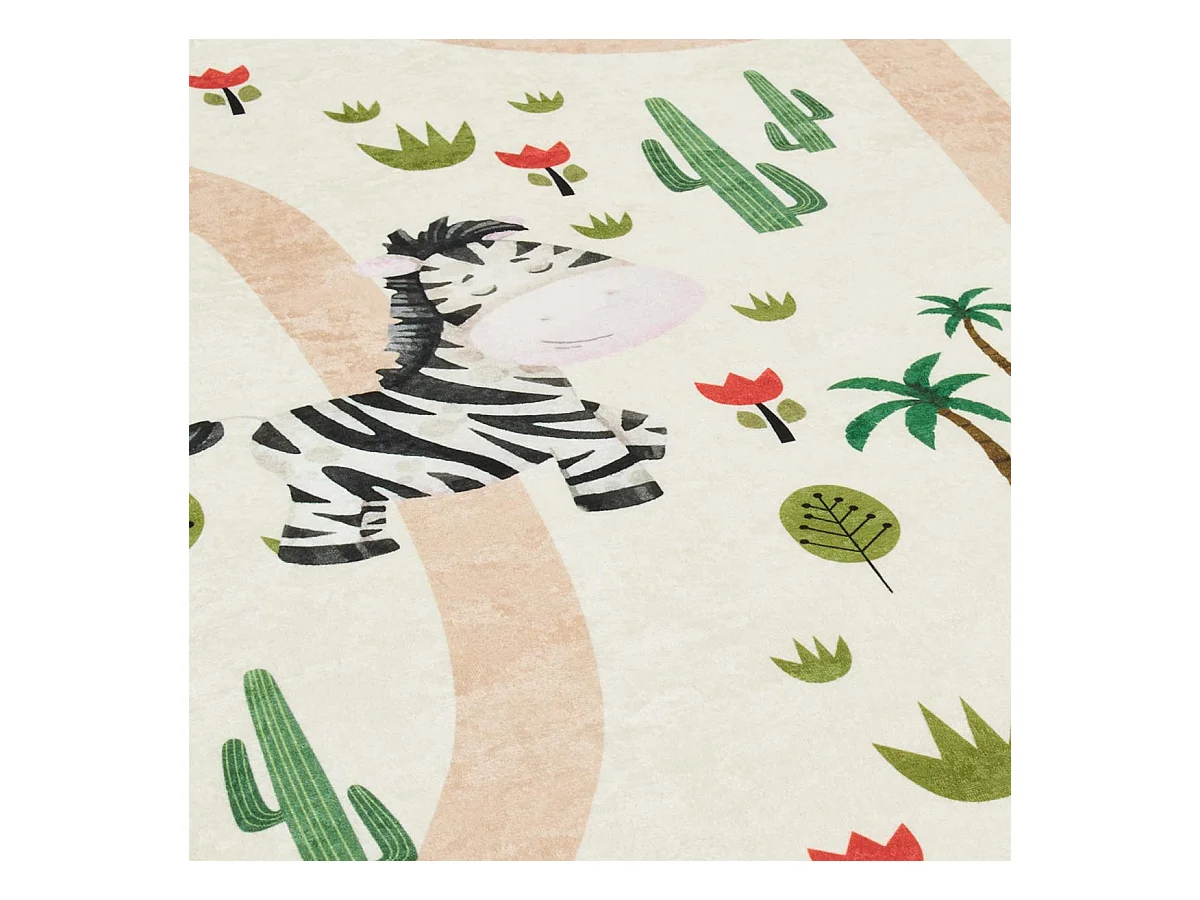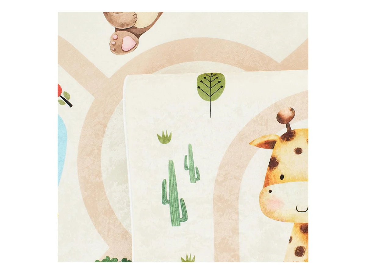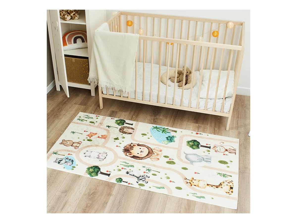 Tapis enfant 80x150 rectangle tissé crème motif animaux CELESTA