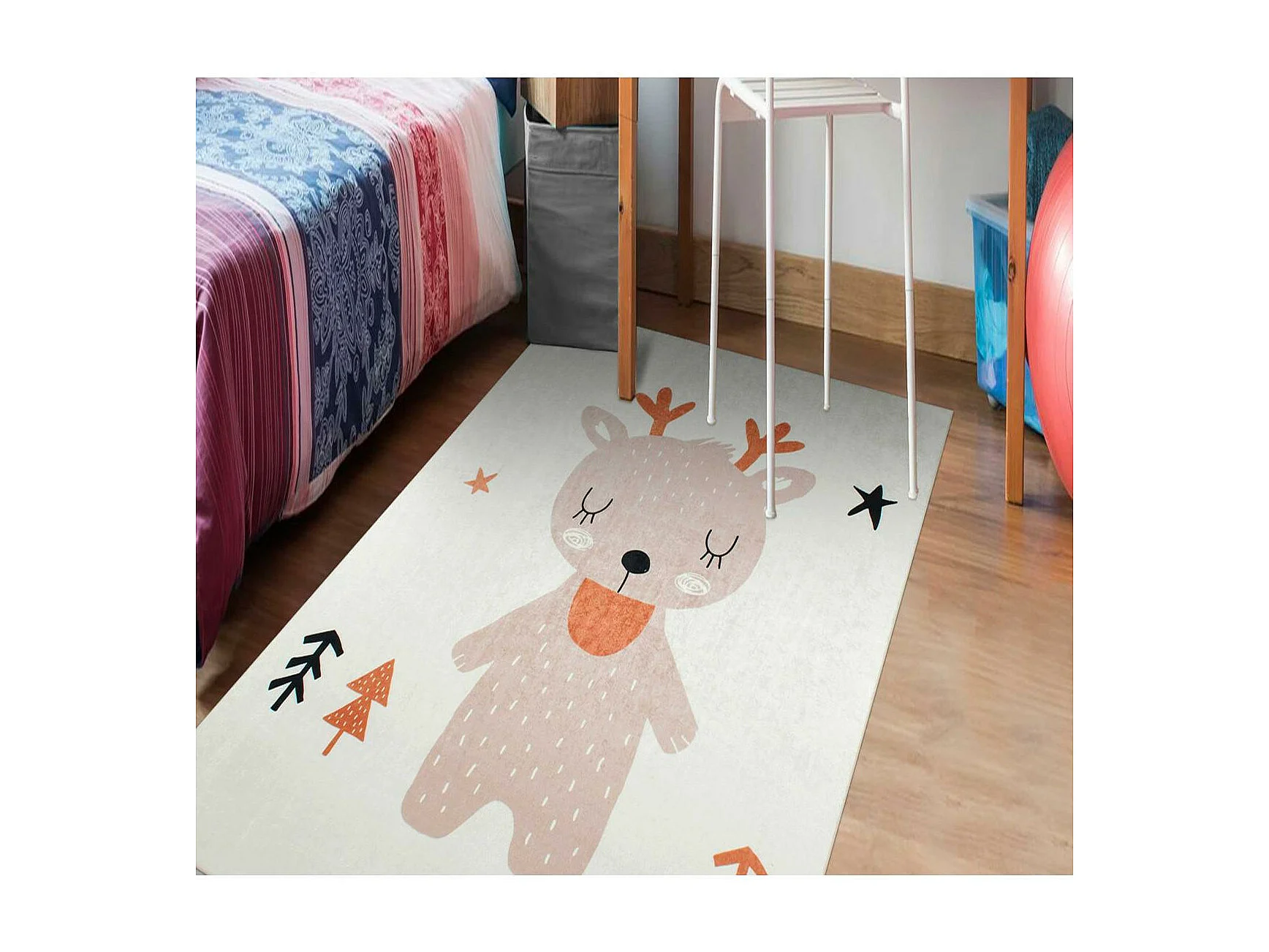 Tapis enfant 80x150 rectangle tissé marron motif animaux RENNE