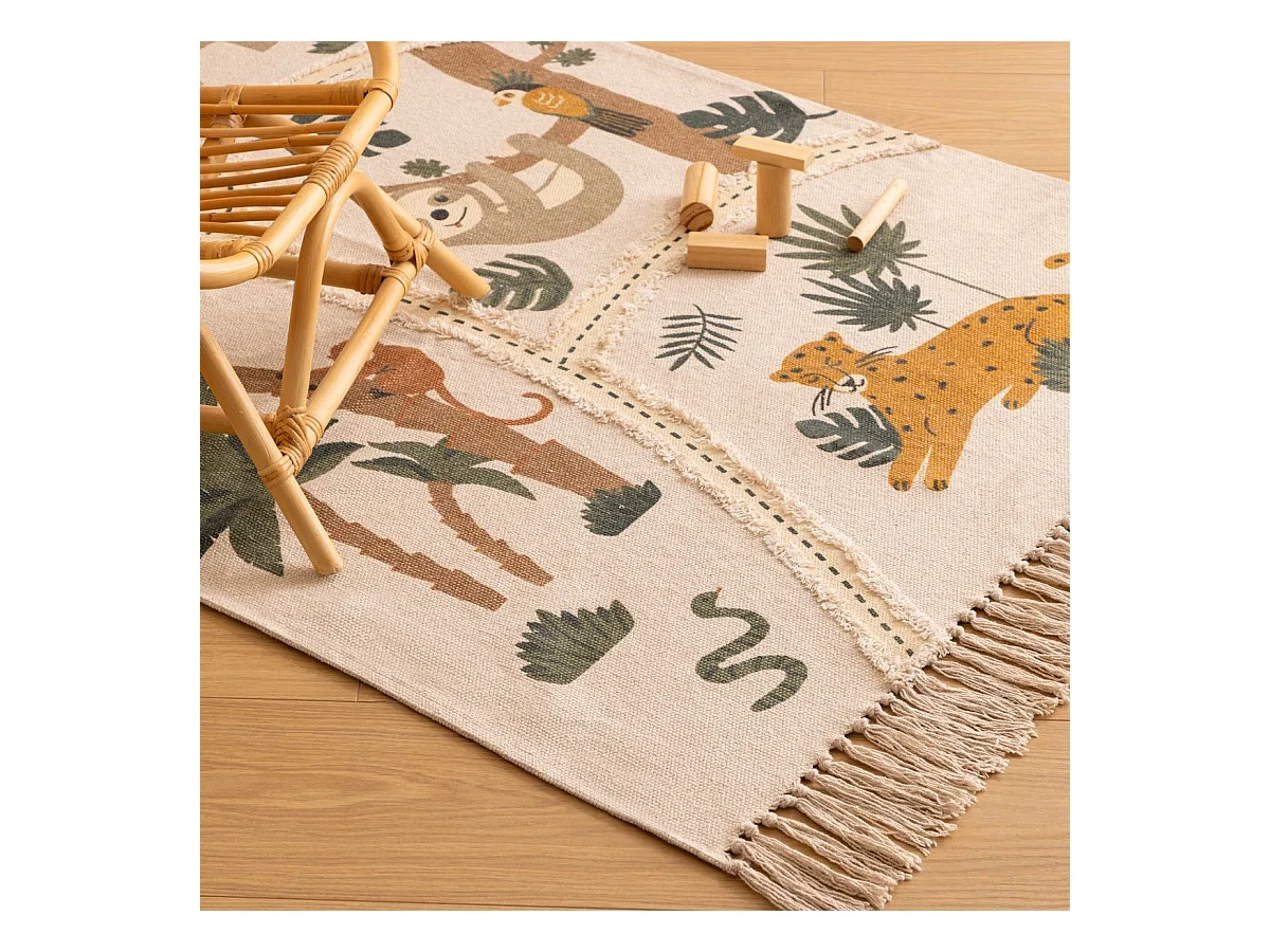 Tapis Enfant "Carte Jungle" 100x150cm Multicolore