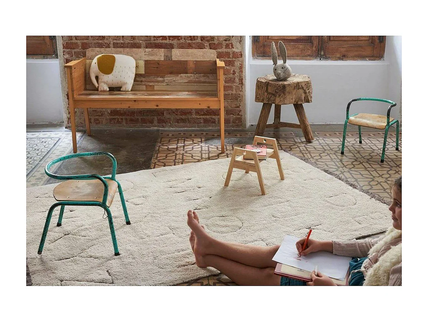 Tapis enfant recyclé lavable en machine ABC Lorena Canals Rectangulaire Enfant Fait main T