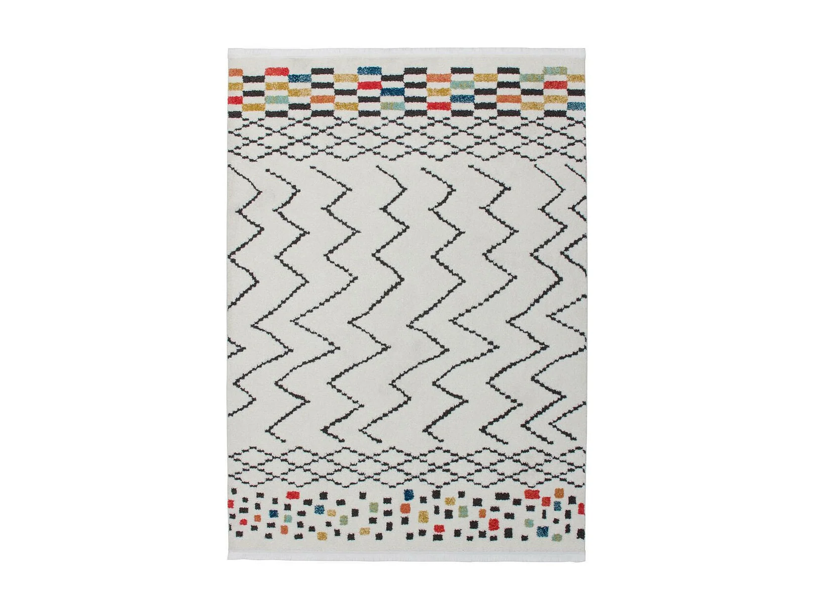 Tapis Ethnique à Franges "Agadir" Noir & Multicolore 200 x 290 cm