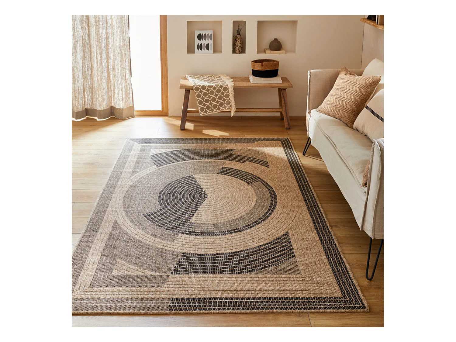 Tapis extérieur - 120x170cm - naturel - 100% polypropylène résistant aux UV - 1400 gr/m² - NOUR