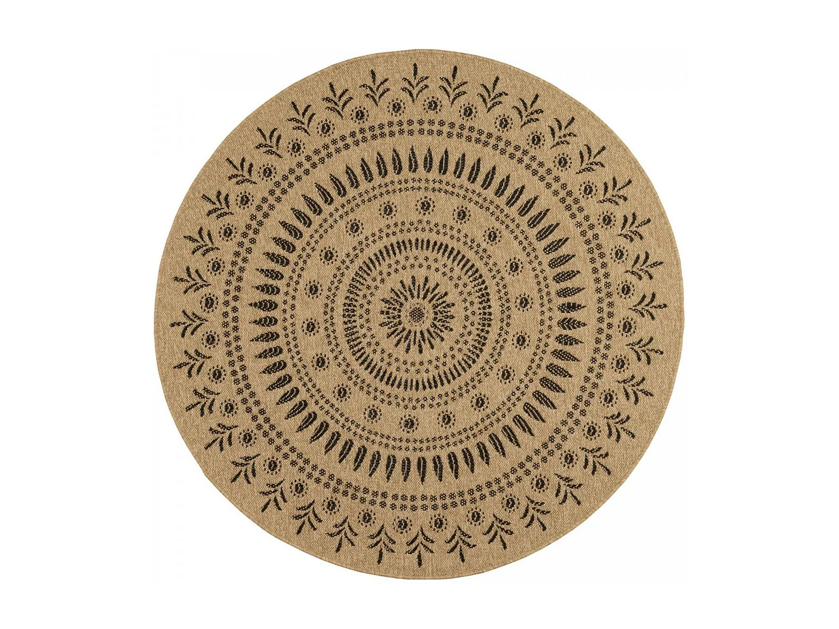 Tapis extérieur Ø160cm rond tissé kilim beige et noir JUTE ART 6