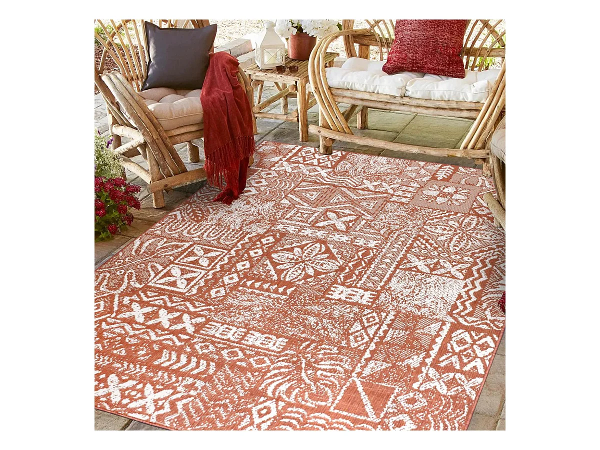Tapis extérieur, kilim reversible 160x230 LYN2 AF REVERSIBLE terracotta et crème