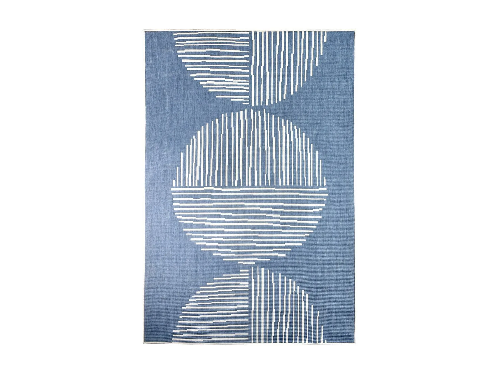 Tapis rond d'extérieur, kilim reversible Ø240cm LYN2 C ROND REVERSIBLE bleu et blanc