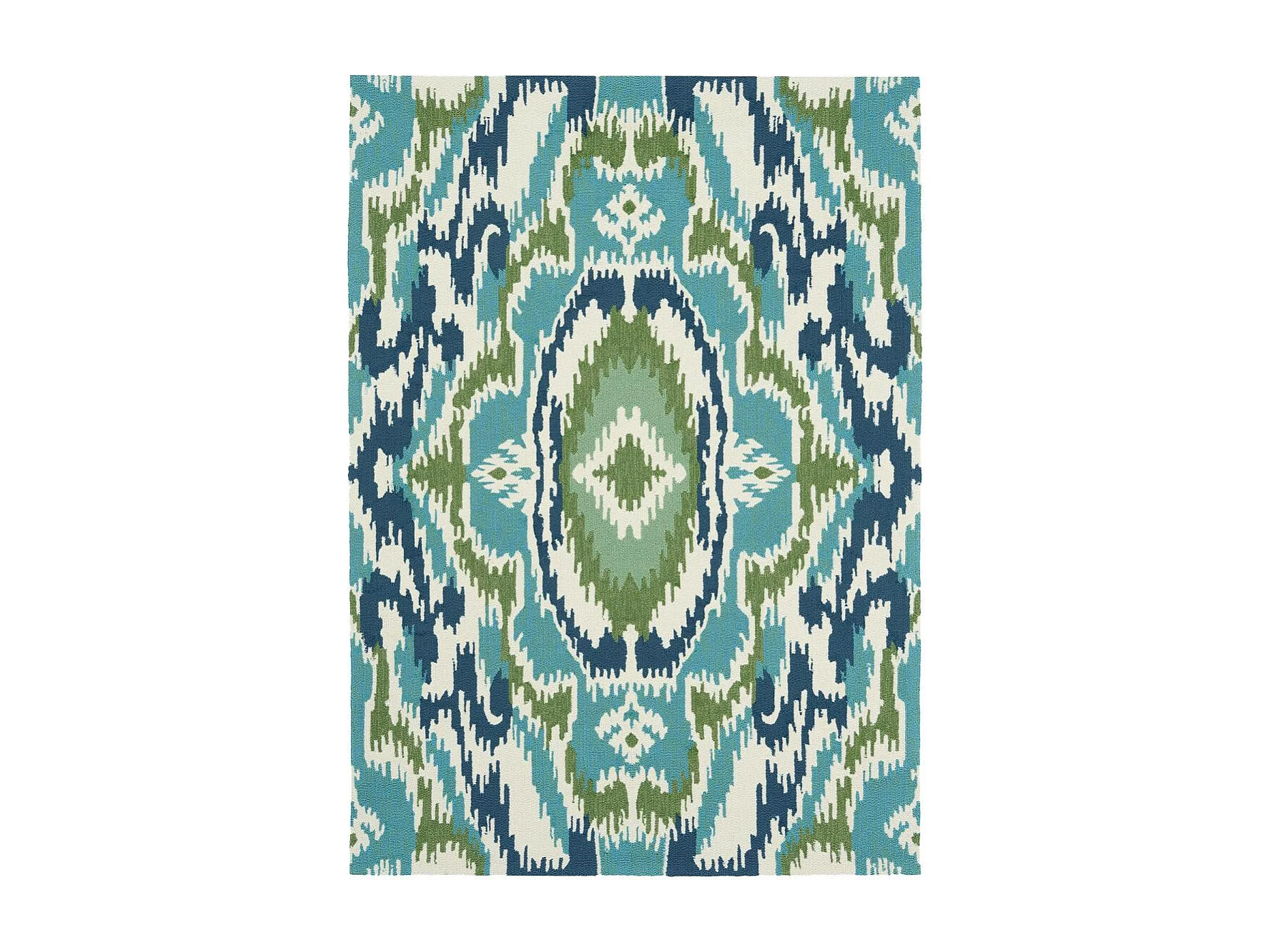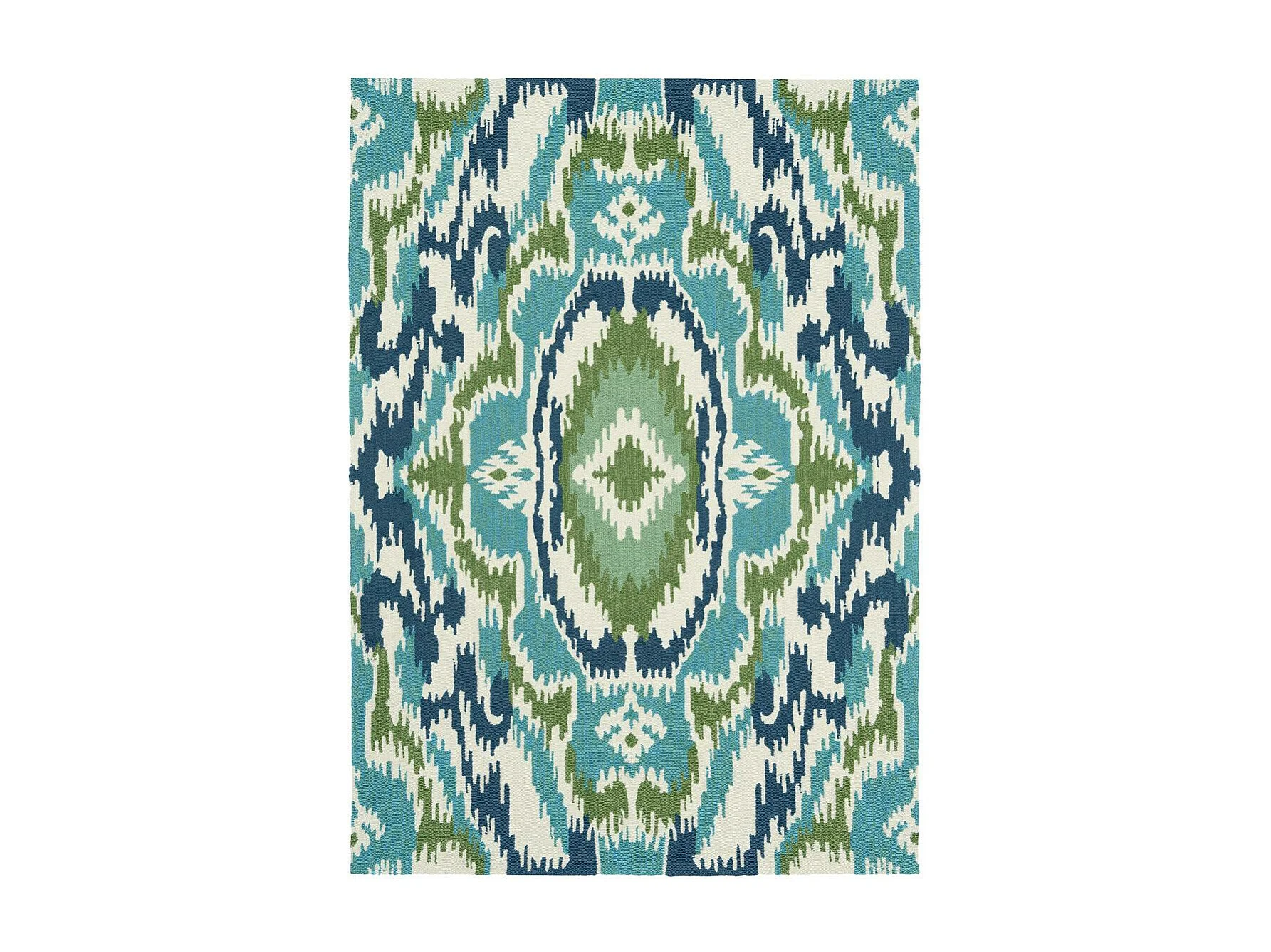 Tapis extérieur 250x350 tissé kilim vert et bleu IXORA