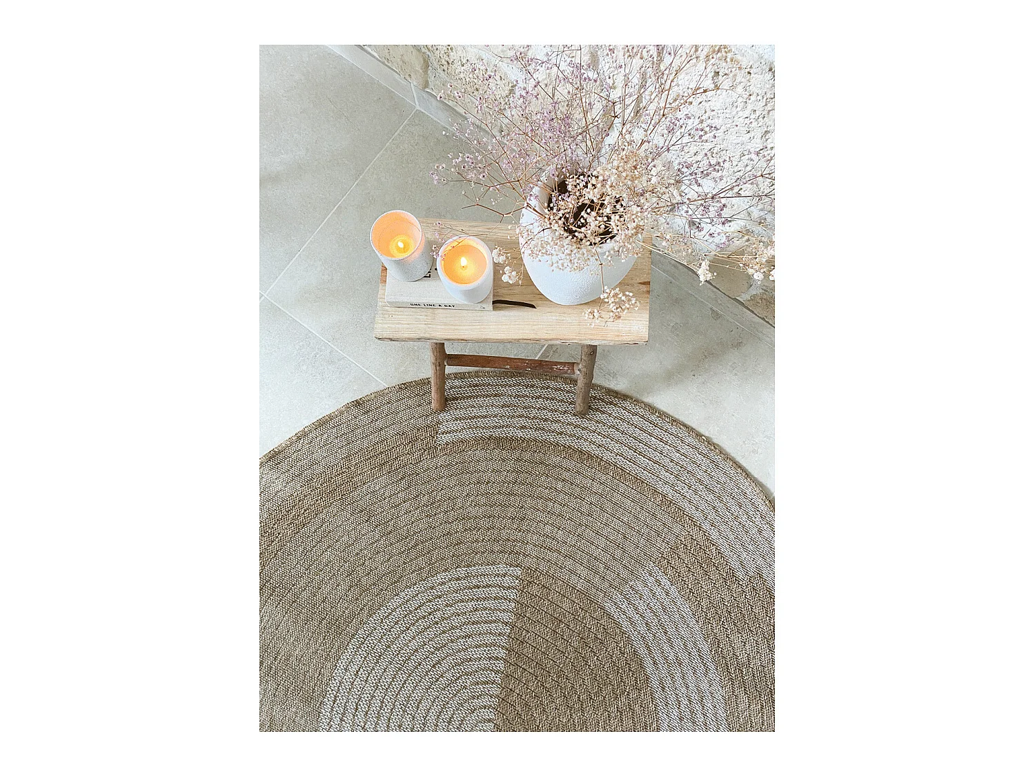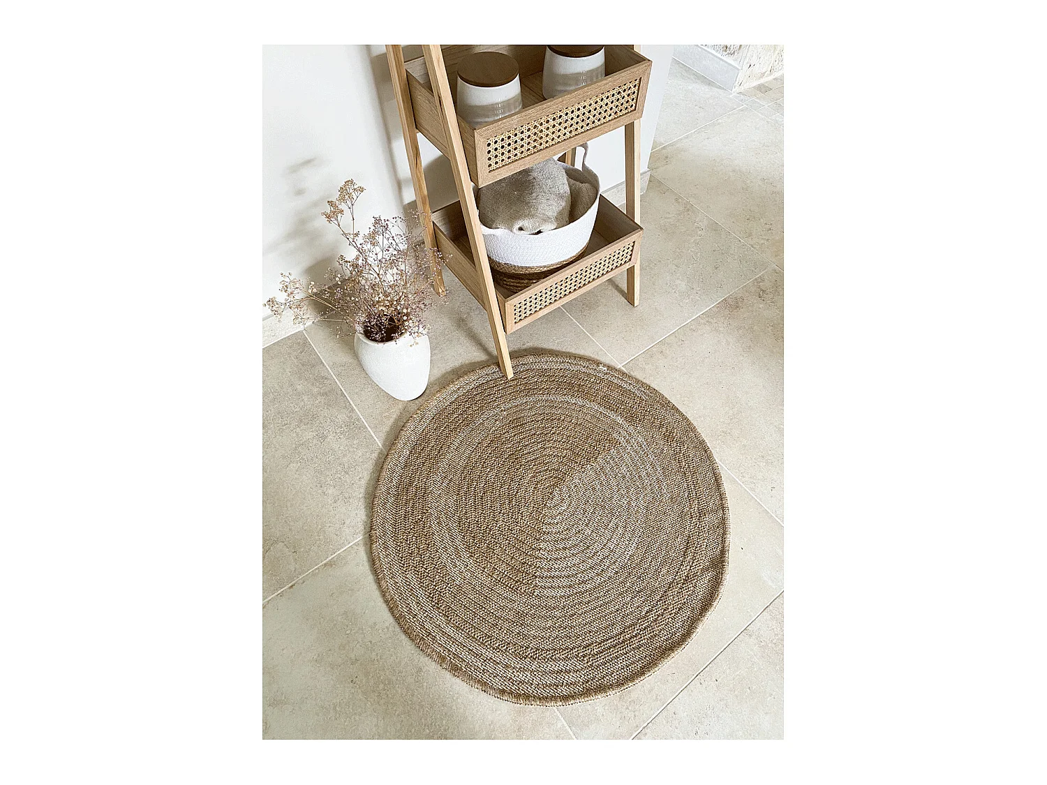 Tapis extérieur rond - 120cm - naturel - 100% polypropylène résistant aux UV - 1400 gr/m² - NOUR