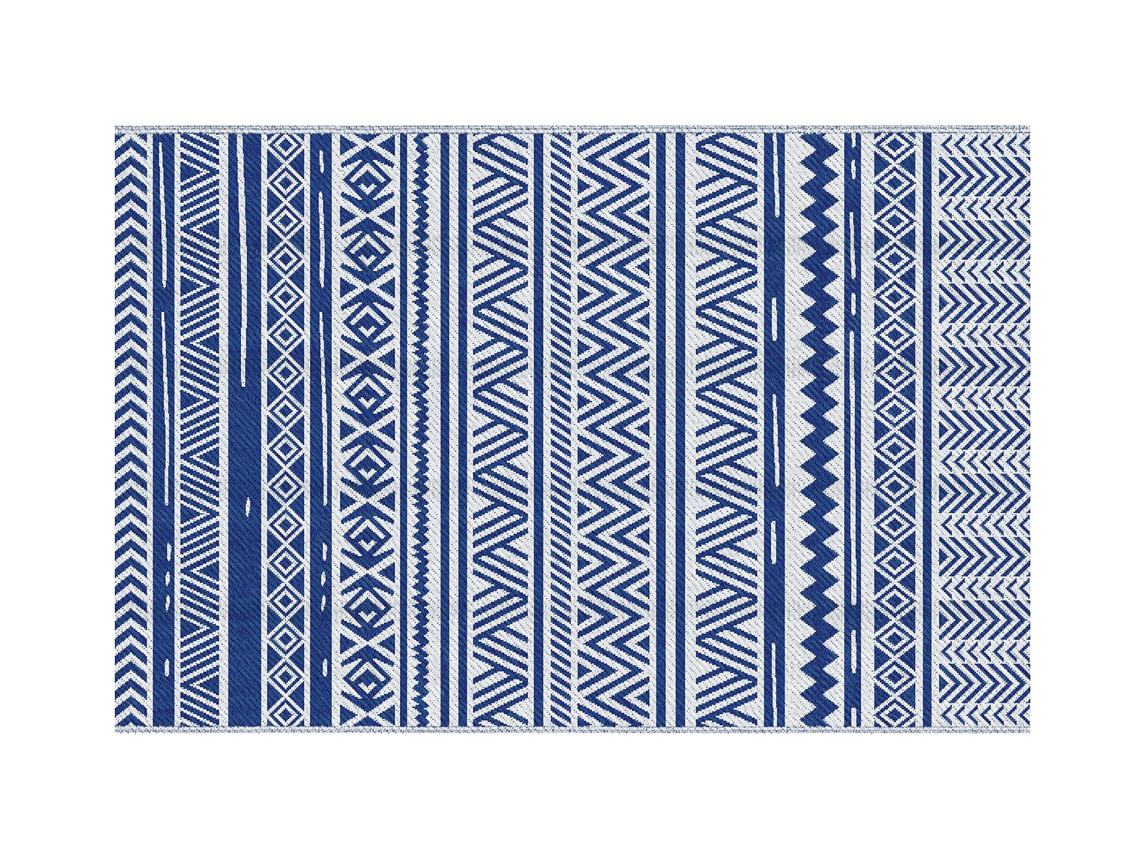 Tapis d'Extérieur Ethnique "Yoga" Bleu & Ivoire 80 x 150 cm