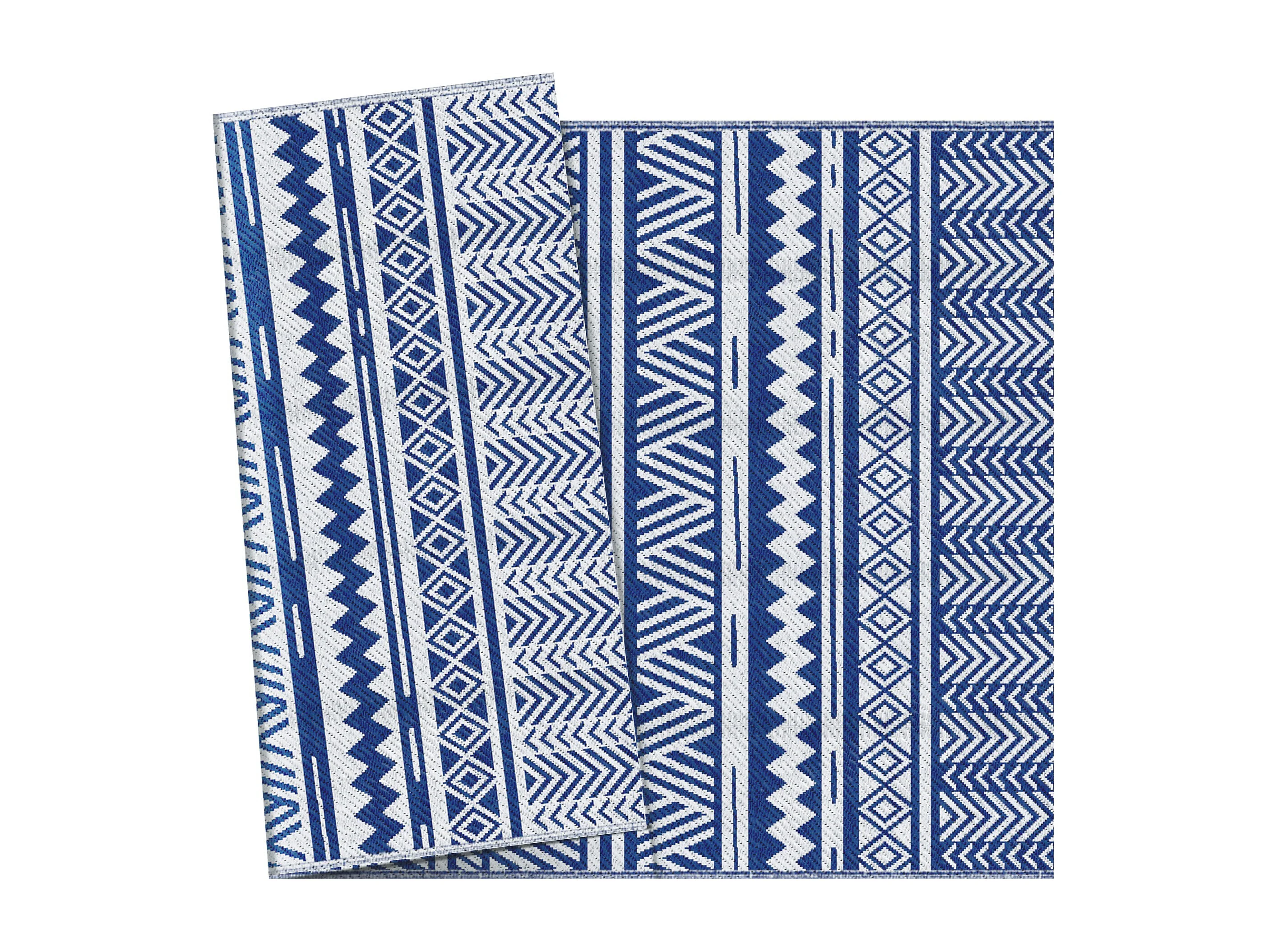 Tapis extérieur style graphique - tapis réversible - dim. 2,74L x 1,82l m, ép. 3 mm - PP haute densité 310 g/m² bleu blanc