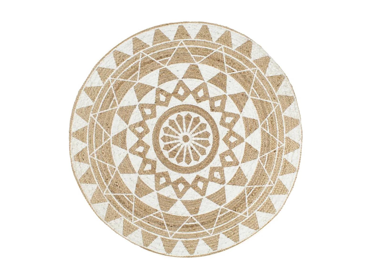 Tapis fait à la main Jute avec imprimé blanc 120cm