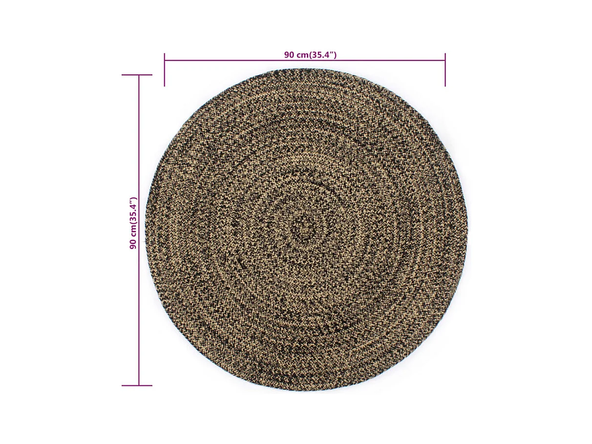 Tapis fait à la main Jute Noir et naturel 90 cm