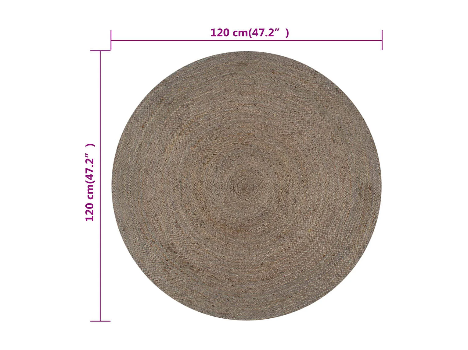 Tapis fait à la main jute avec bord gris foncé 120 cm