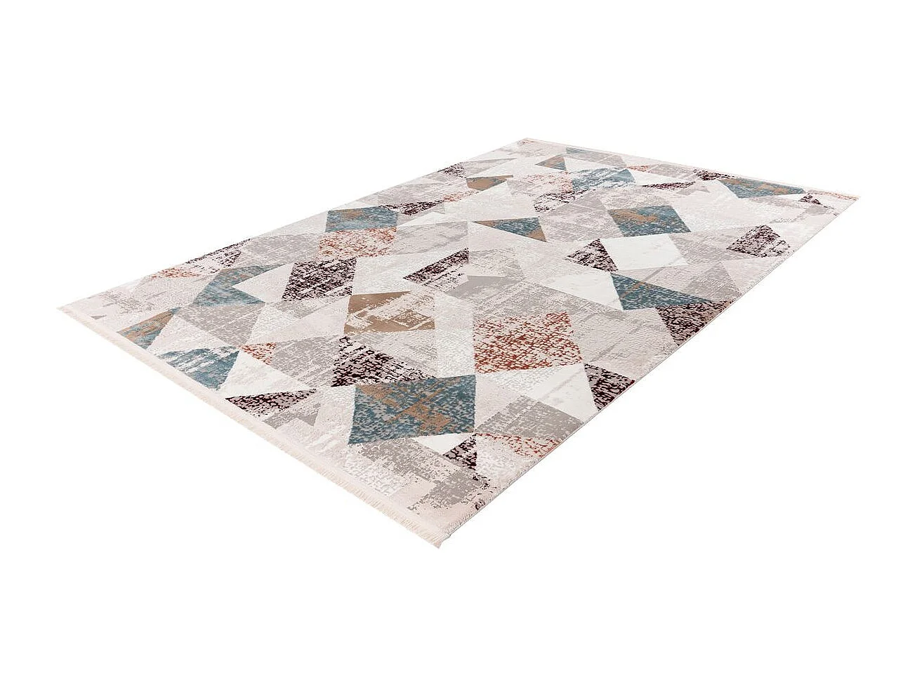 Tapis Géométrique à Franges "Akropolis II" Gris & Rose 160 x 230 cm