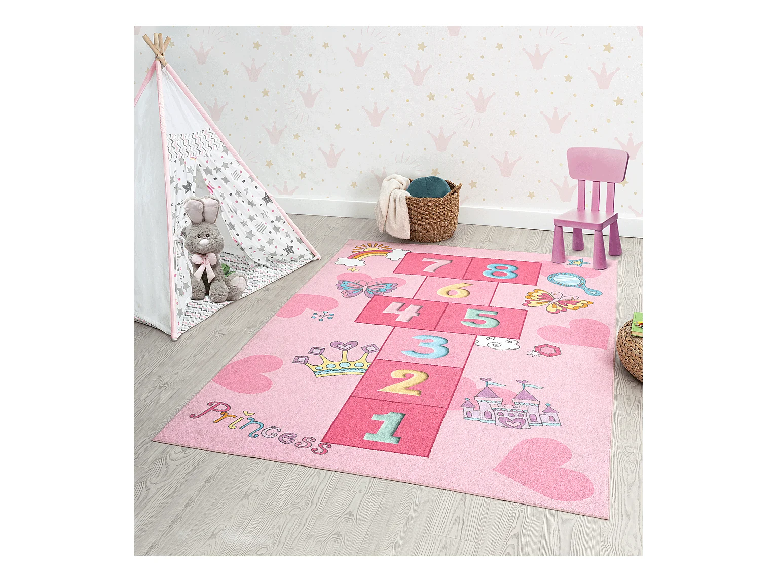 Tapis Happy Life Jeu Princesse - Rose - 160x220 cm