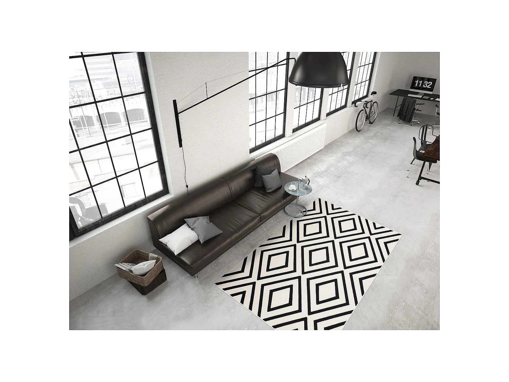 Tapis Imprimé à Poils Courts "Lina" Ivoire & Noir 120 x 170 cm