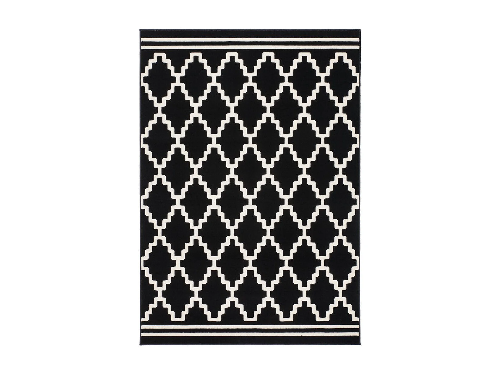 Tapis Géométrique à Poils Courts "Lina" Noir & Ivoire 160 x 230 cm
