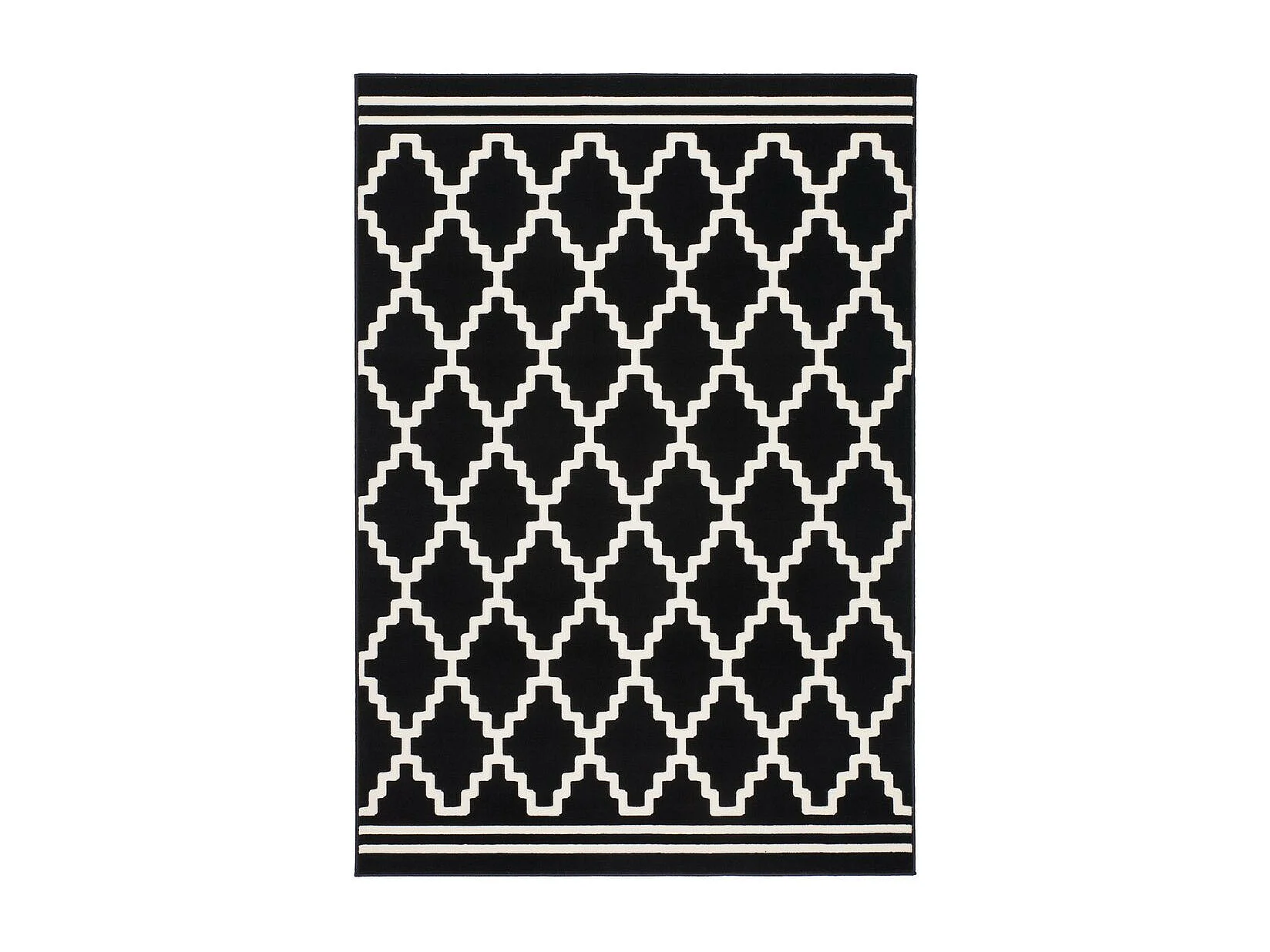 Tapis Géométrique à Poils Courts "Sally" Noir & Blanc 80 x 150 cm
