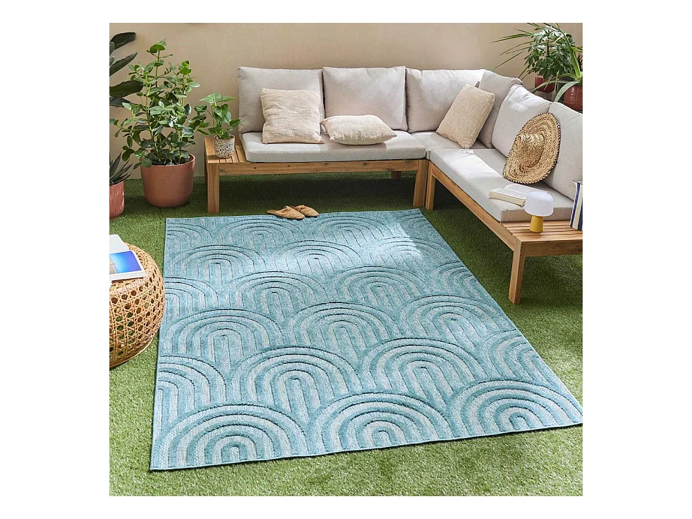 Tapis intérieur extérieur en polypropylène Fira 991 turquoise 150 x 80 cm
