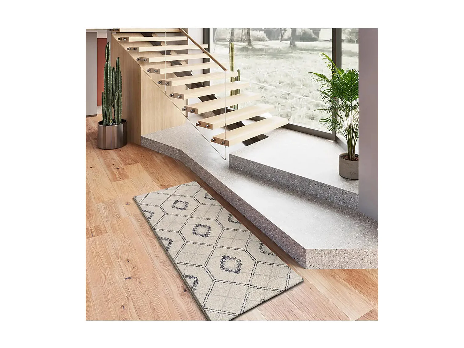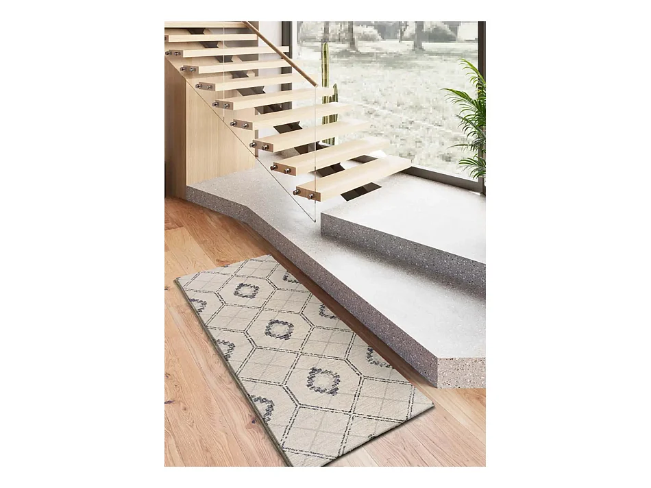 Tapis intérieur - géométrique - bleu / blanc - 80 x 200 cm - SIROCO