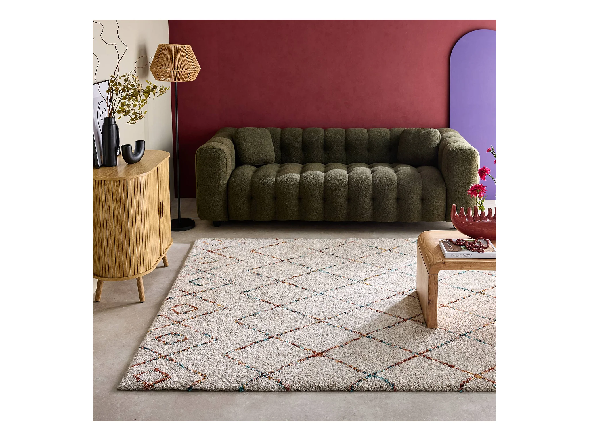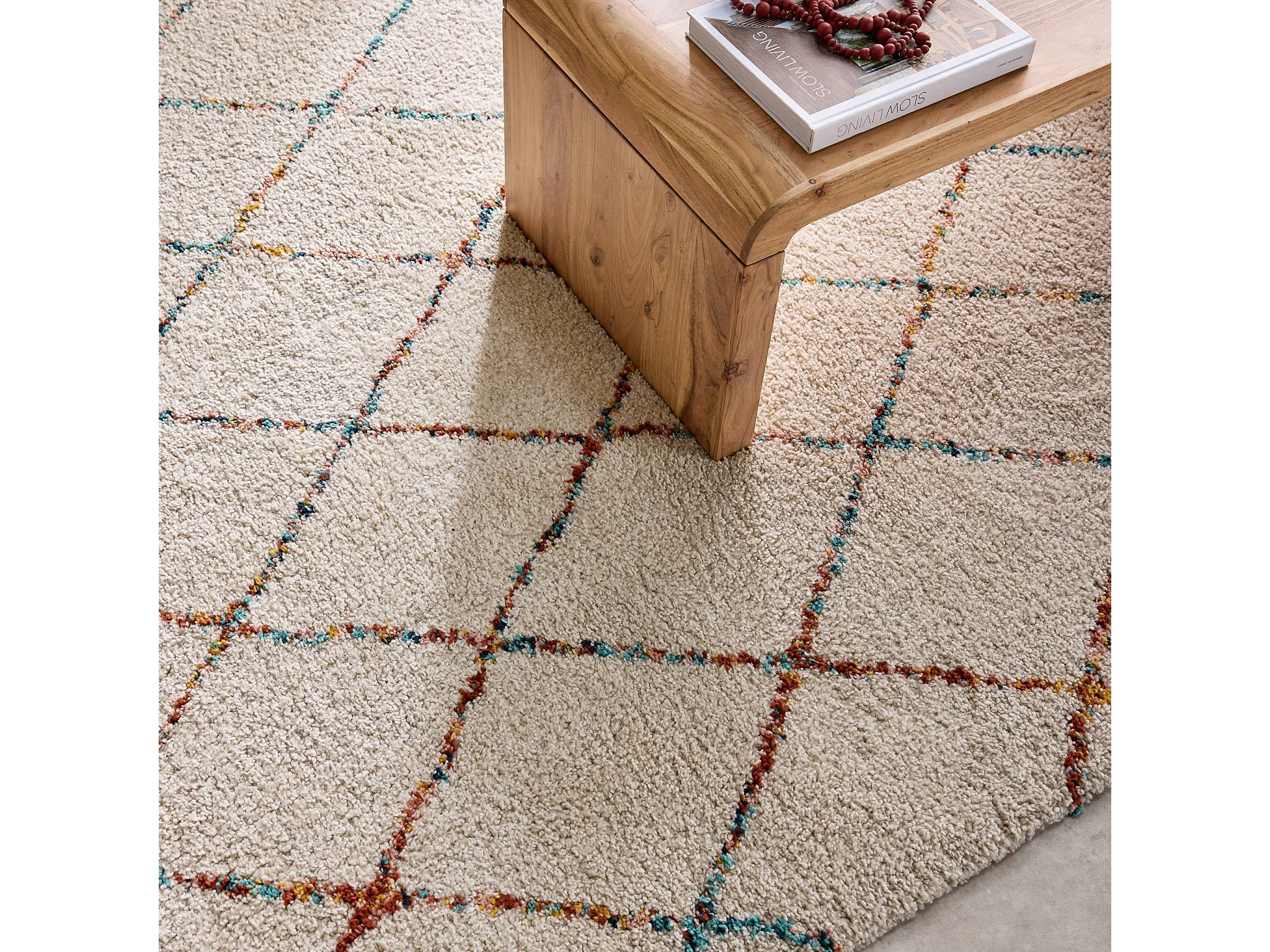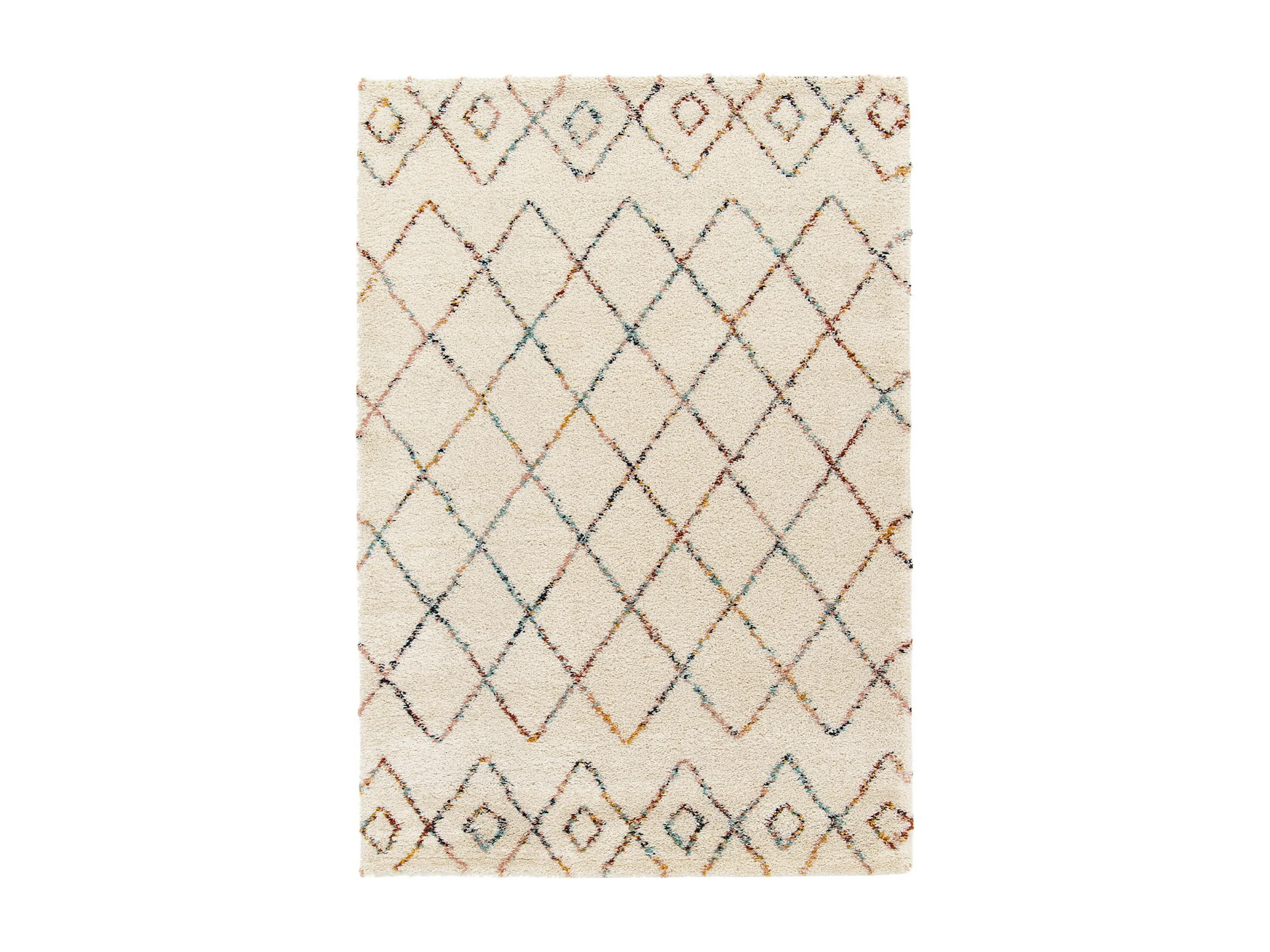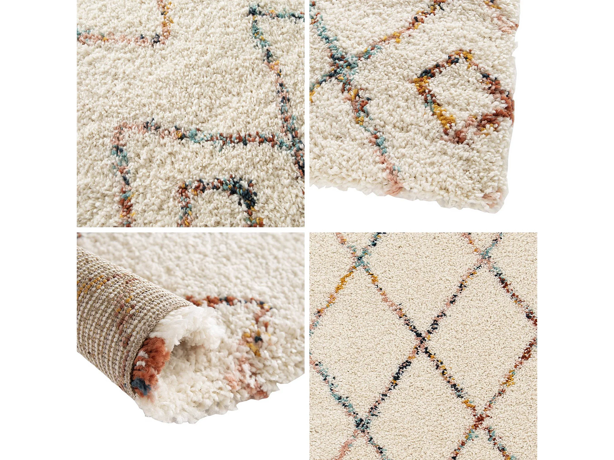 Tapis intérieur shaggy 200 x 290cm poils longs. style berbère. crème et multicolore