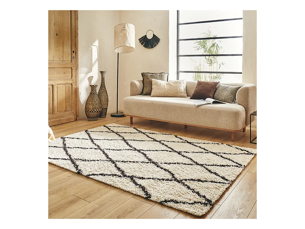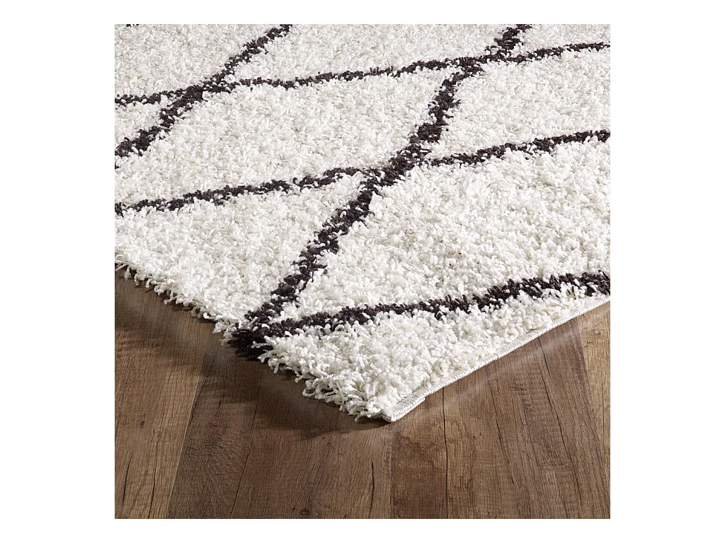 Tapis intérieur shaggy. poils longs. style berbère. blanc et noir 160 x 230 cm - Robby
