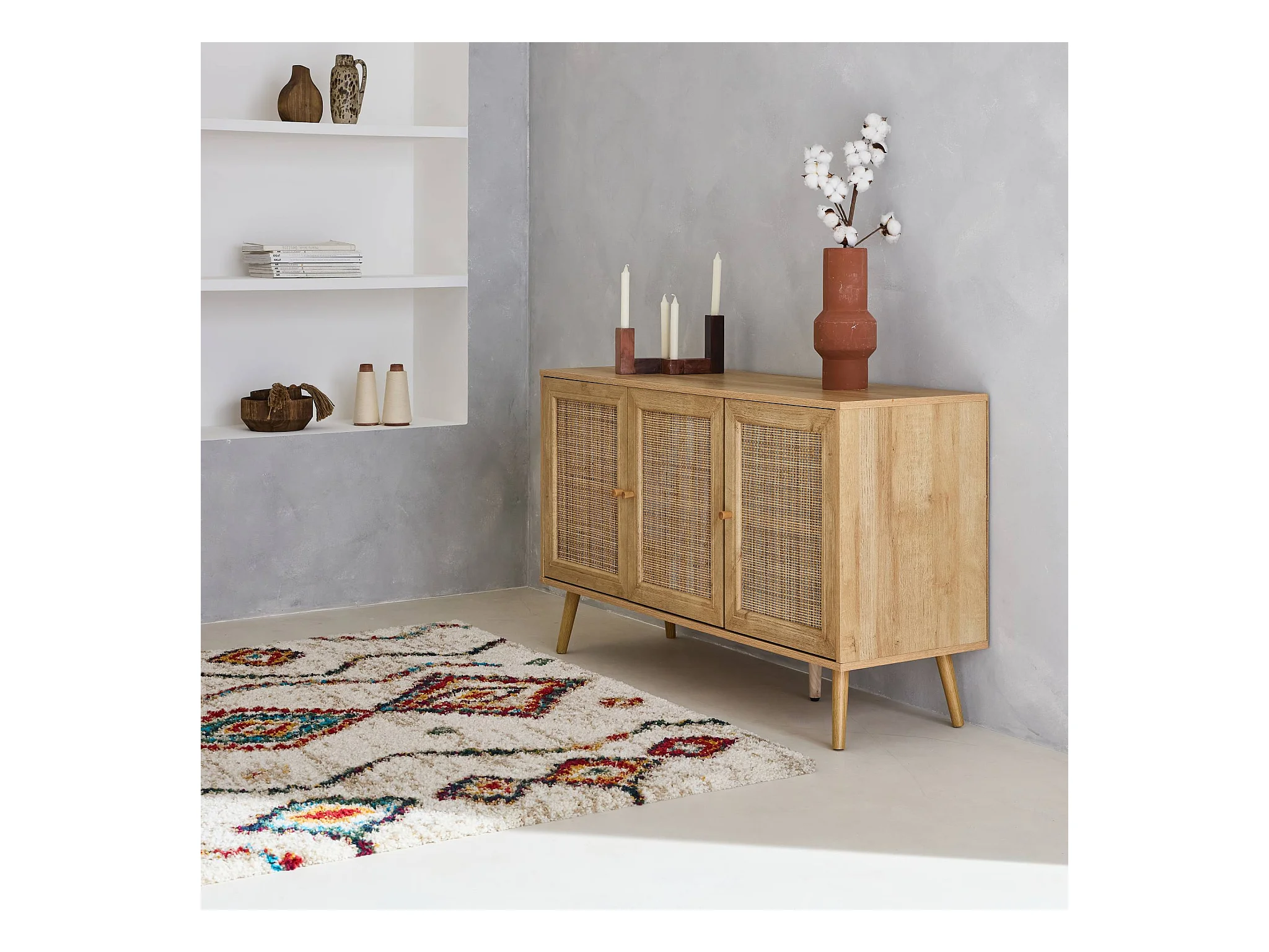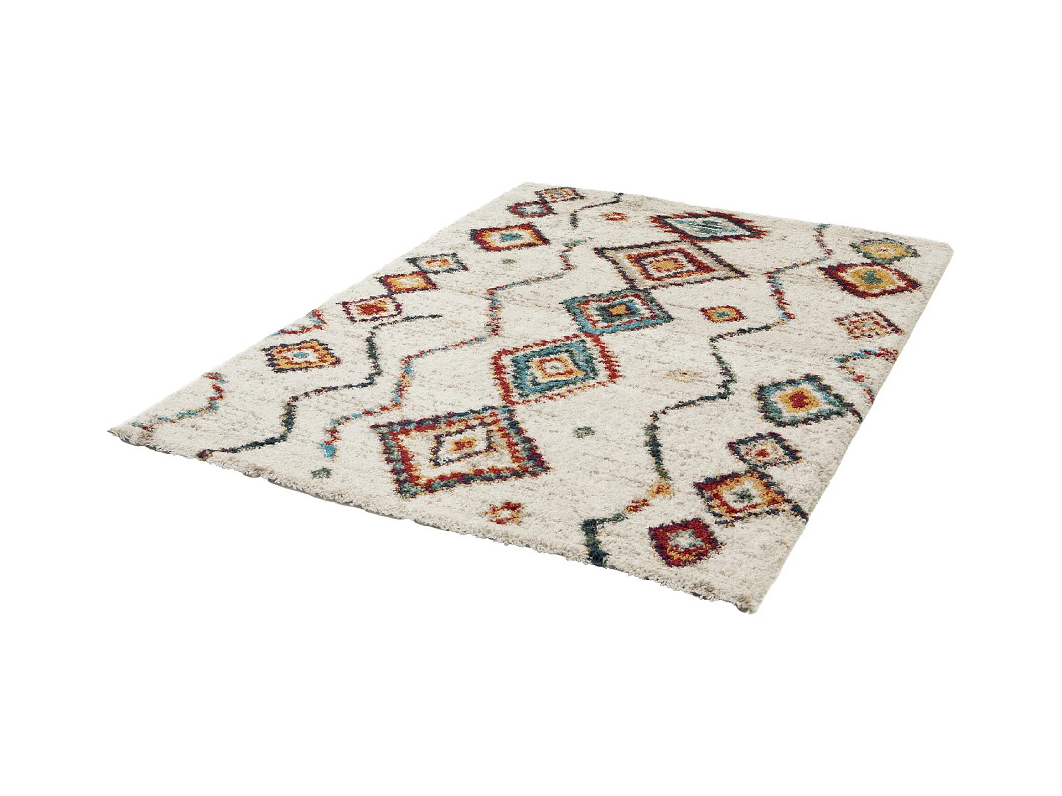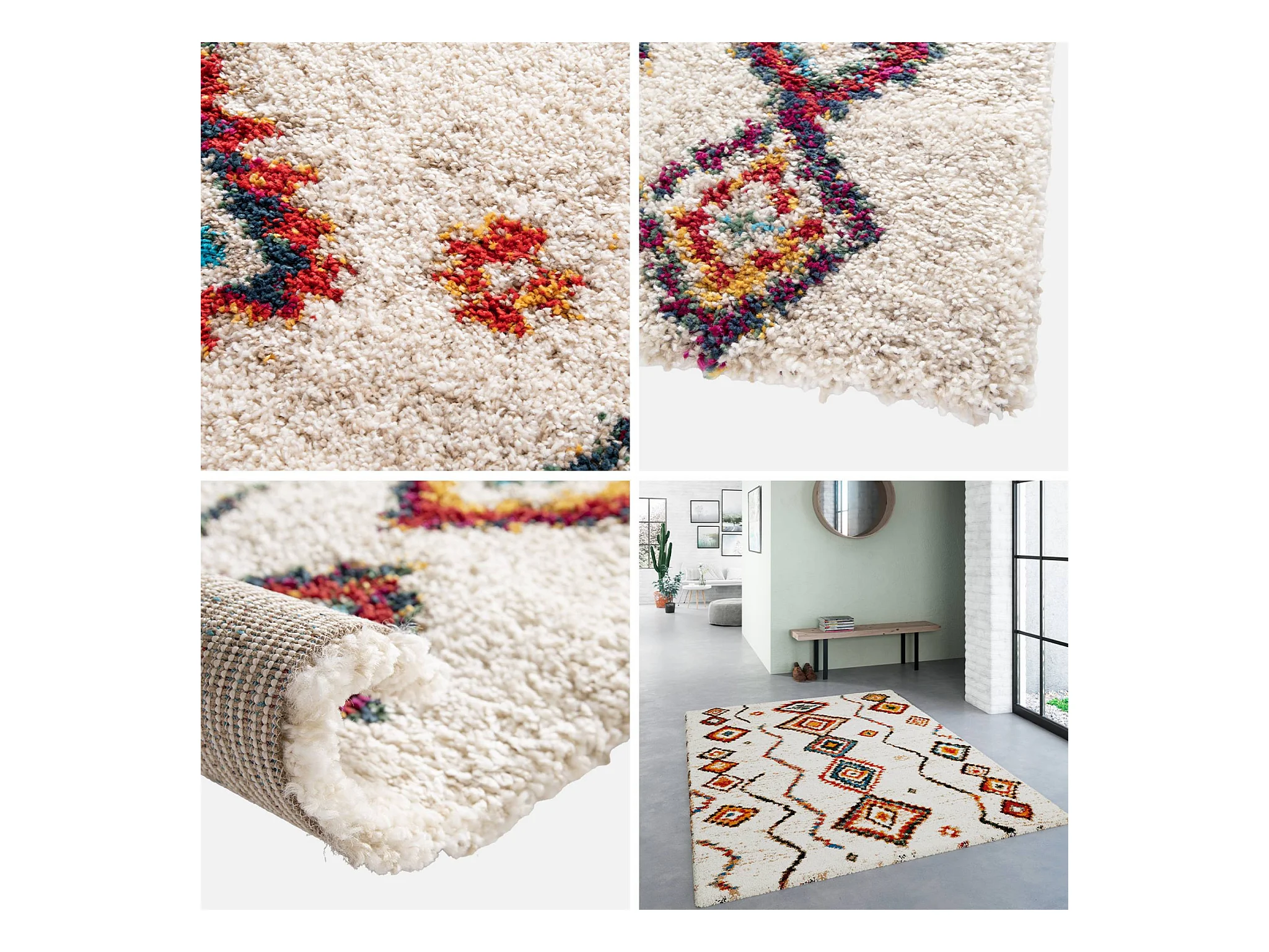 Tapis intérieur shaggy. style berbère. poils longs. crème et multicolore 200 x 290cm