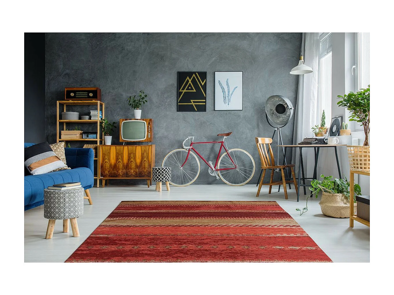 Tapis Tissé Imprimé Oriental "Faye" Rouge 80 x 150 cm