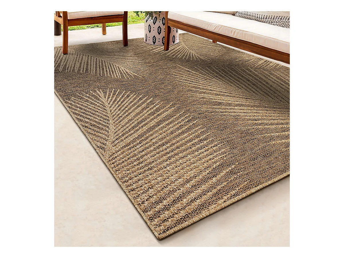Tapis Kansas intérieur extérieur jute palmier résistant intempéries terrasse - Nature - 120 x 170 cm