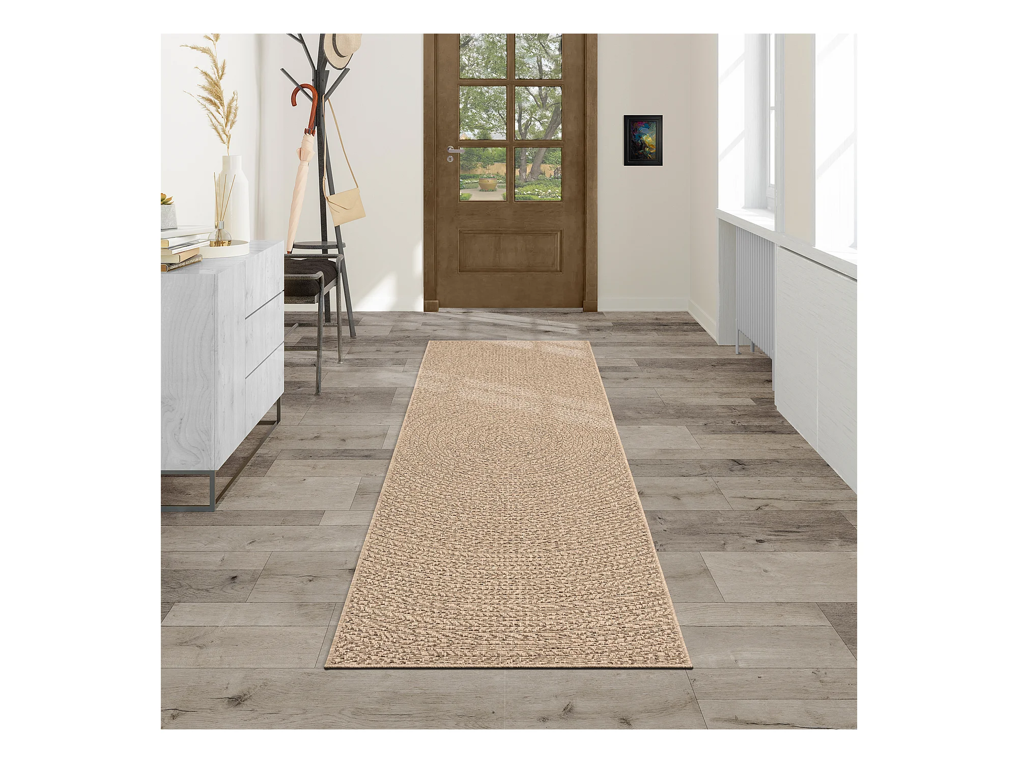 Tapis Kansas intérieur extérieur jute uni résistant intempéries terrasse - Nature - 80 x 250 cm