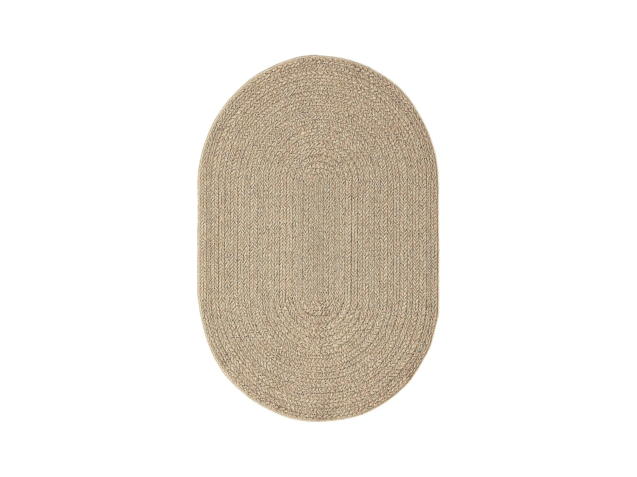 Tapis Kansas intérieur extérieur jute uni résistant intempéries terrasse - Nature - 140 x 200, Ovale