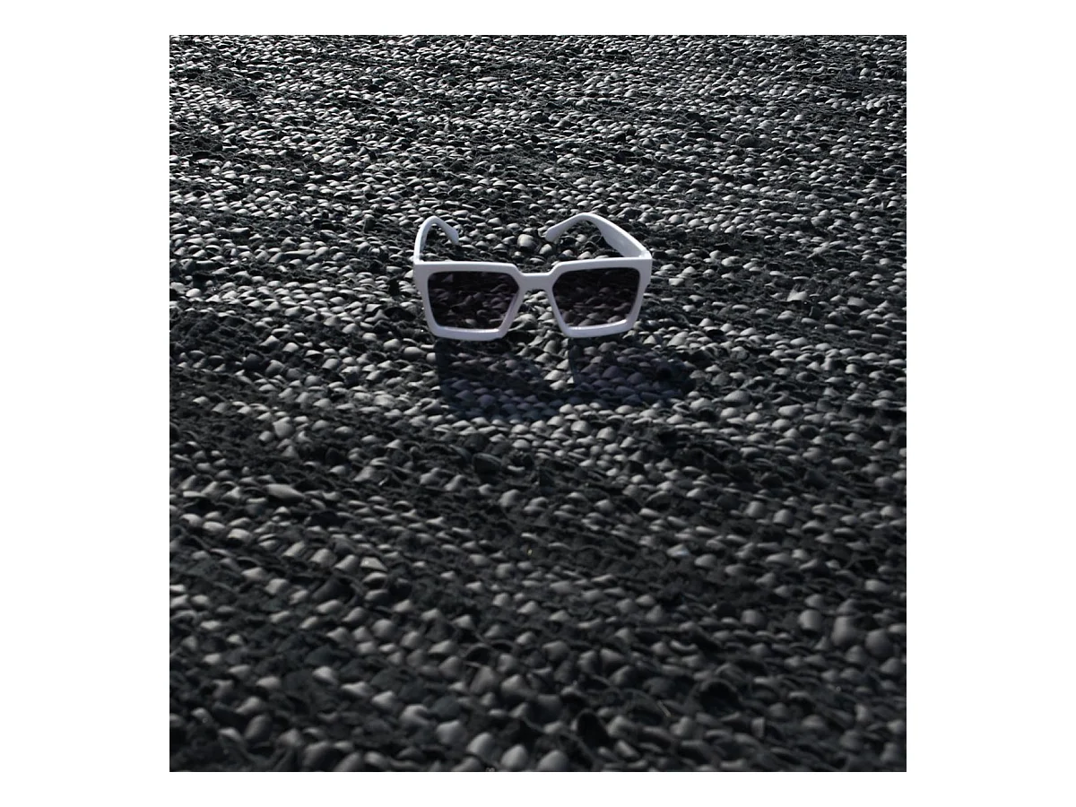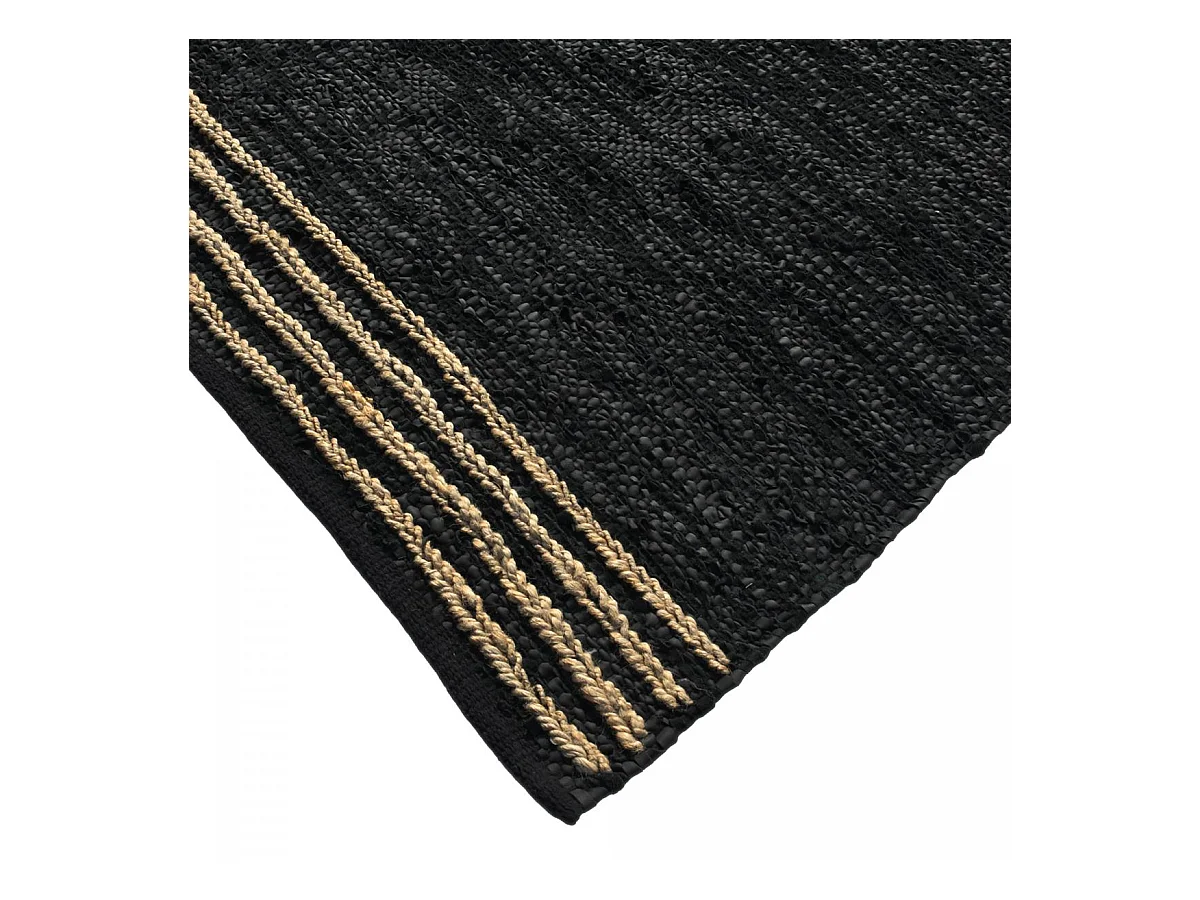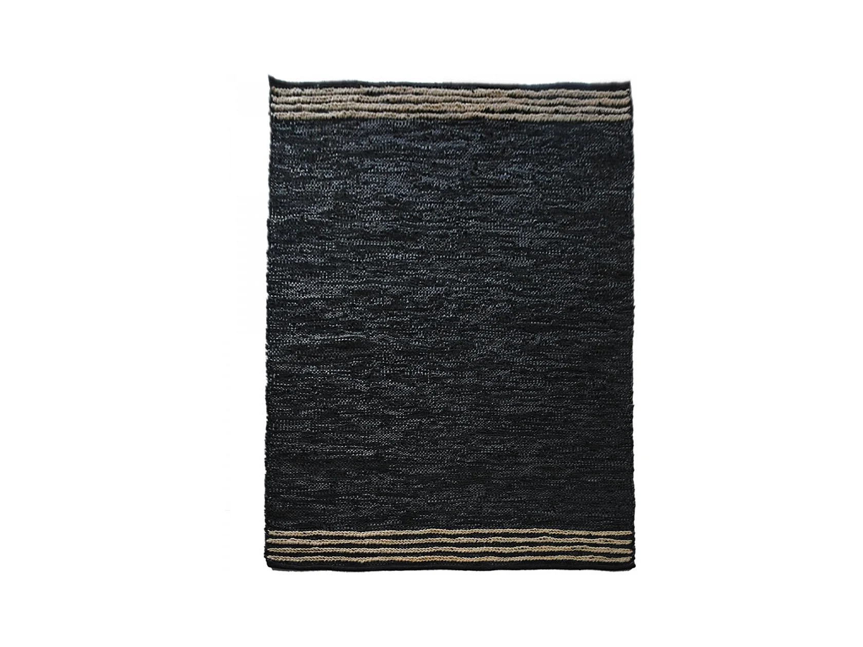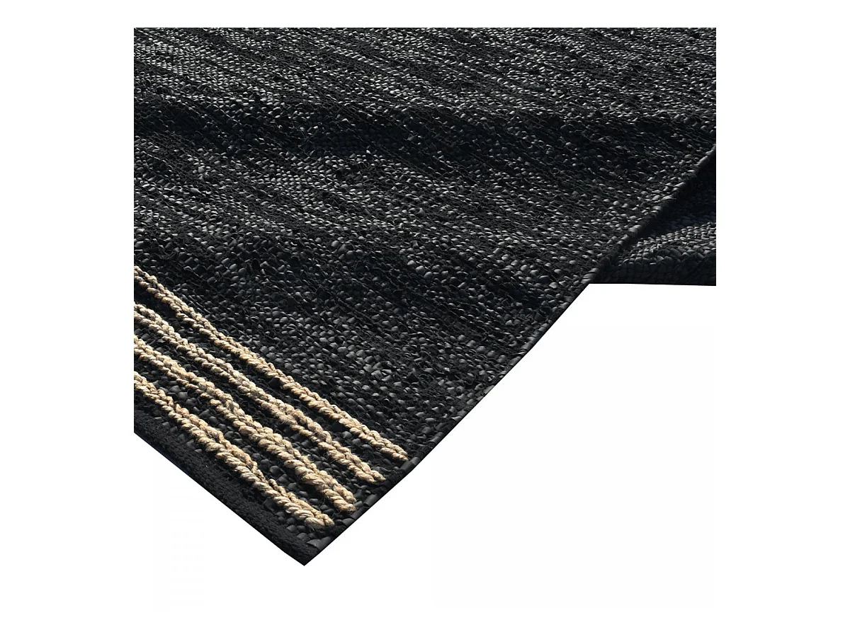 Tapis kilim 120x170 rectangle fait main en cuir noir motif simple CUIRLINE