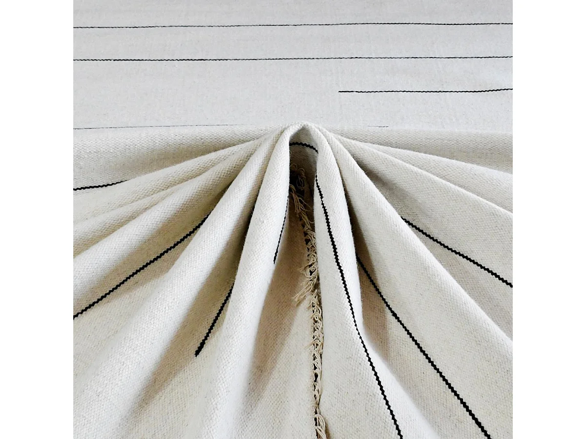 Tapis kilim 120x170 rectangle fait main en laine crème et gris motif simple