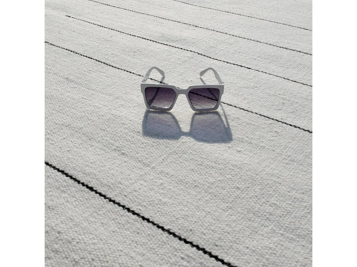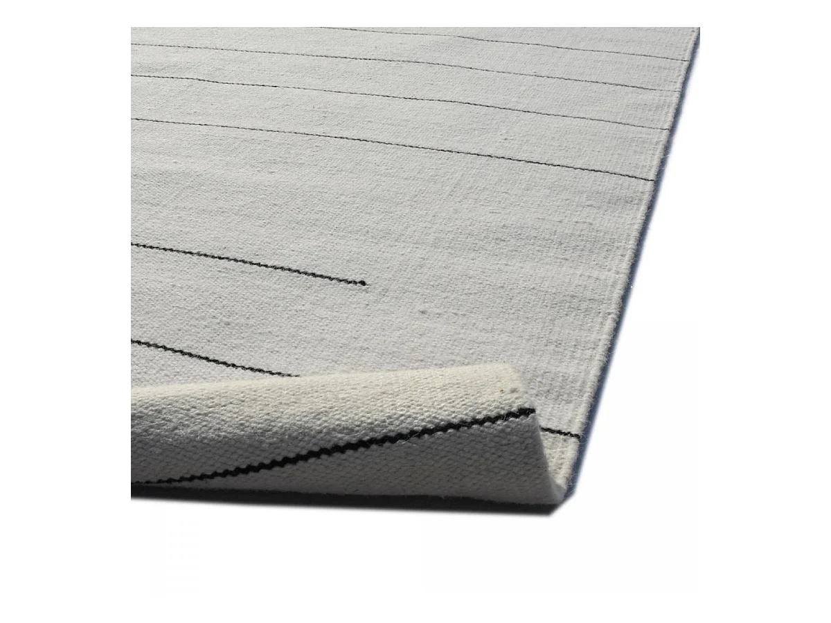 Tapis kilim 160x230 rectangle fait main en laine crème et gris motif simple