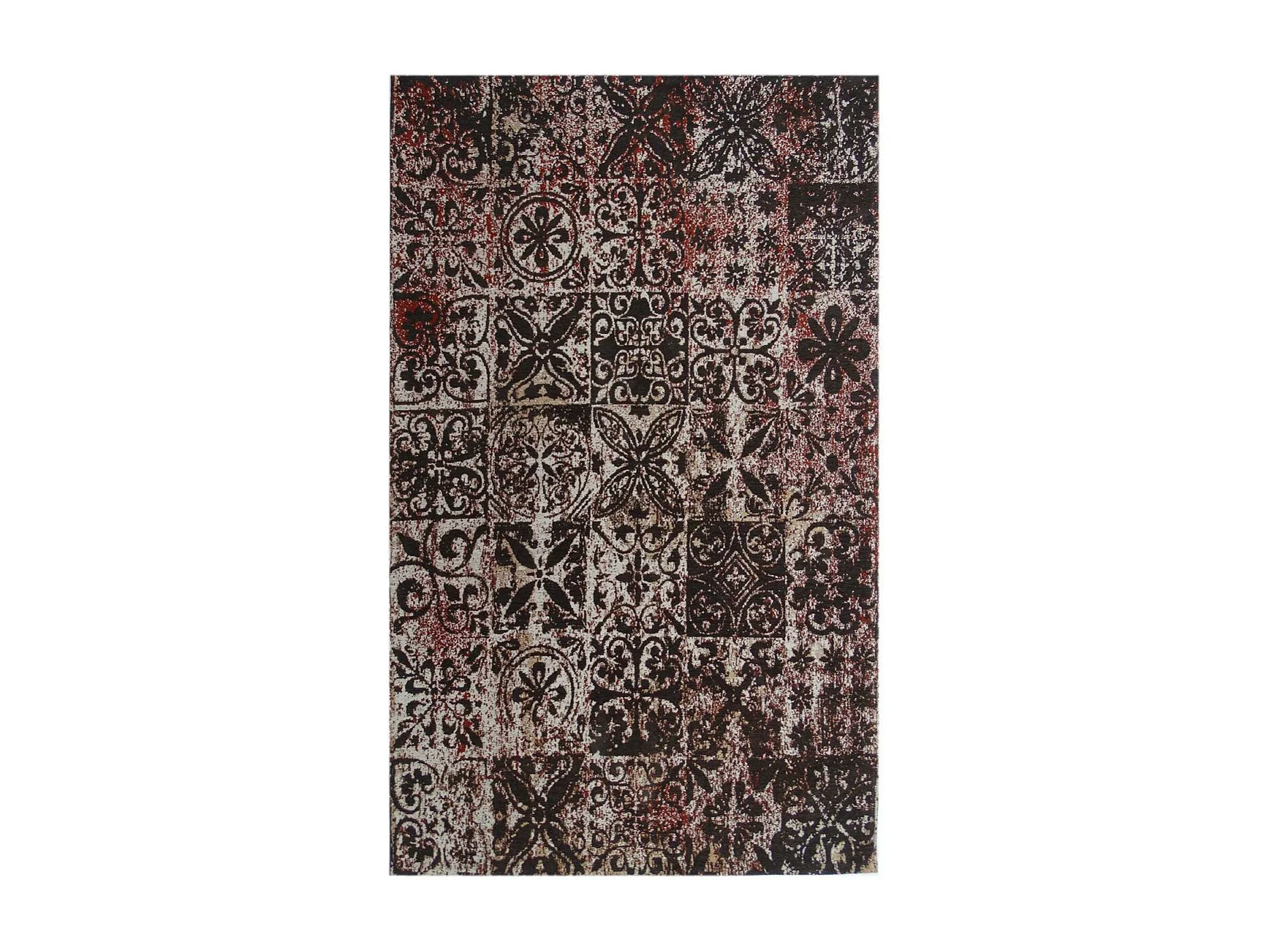 tapis chambre 170x240 fait à la main en laine marron et beige motif floral