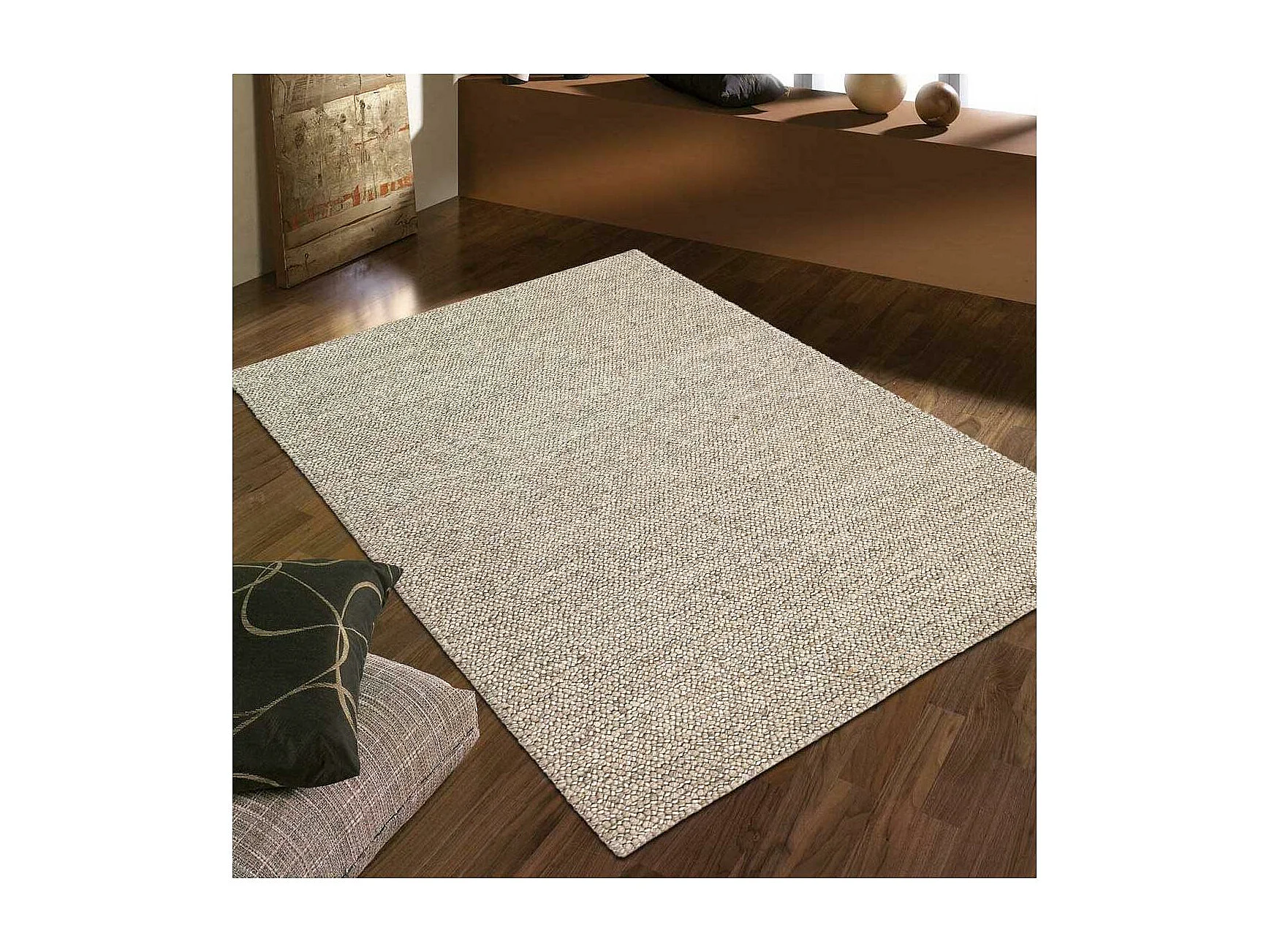 Tapis kilim 140x200 rectangle fait main en laine beige motif uni LOOK 603
