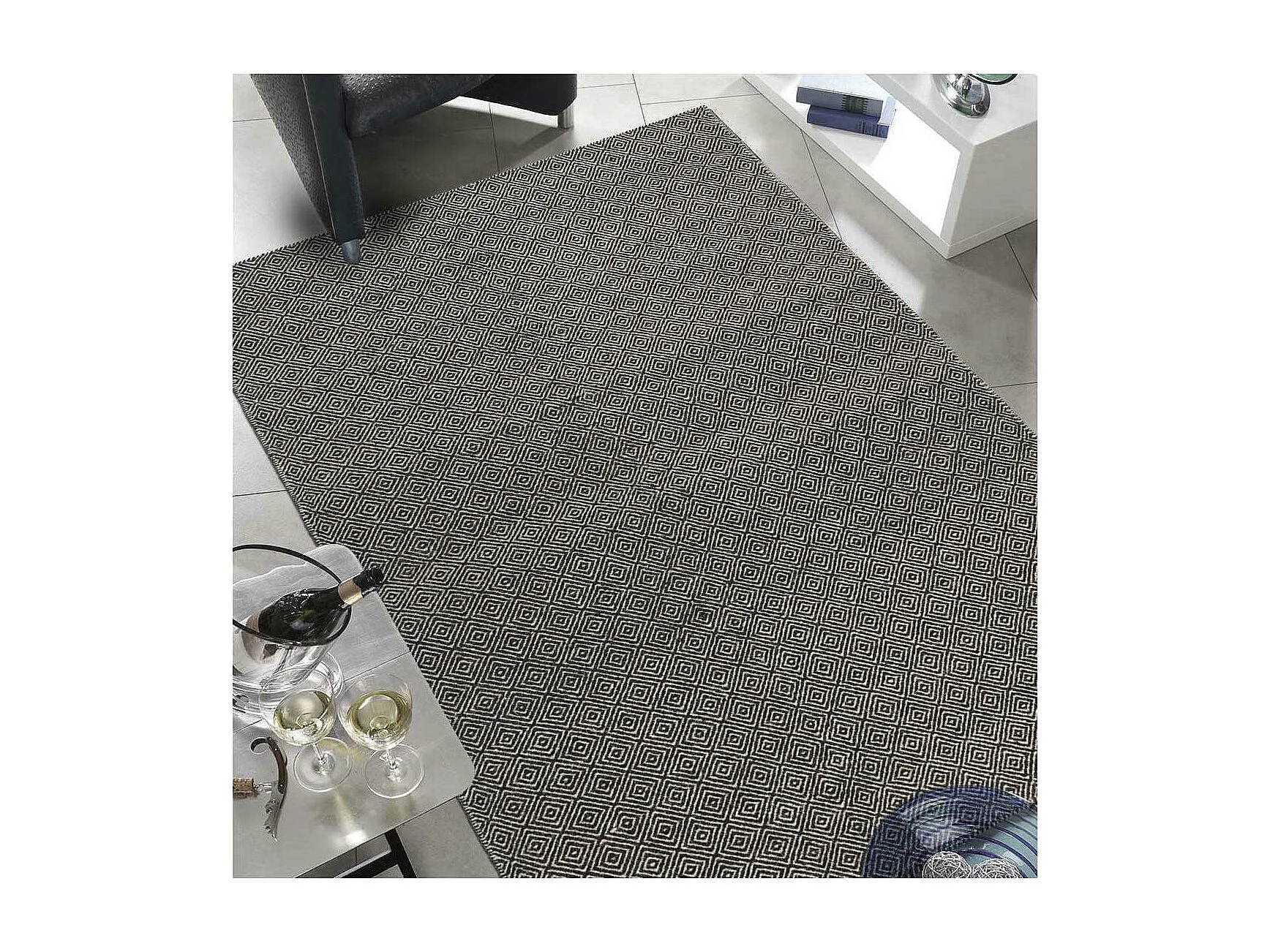 Tapis kilim 170x240 rectangle fait main en laine gris motif géométrique