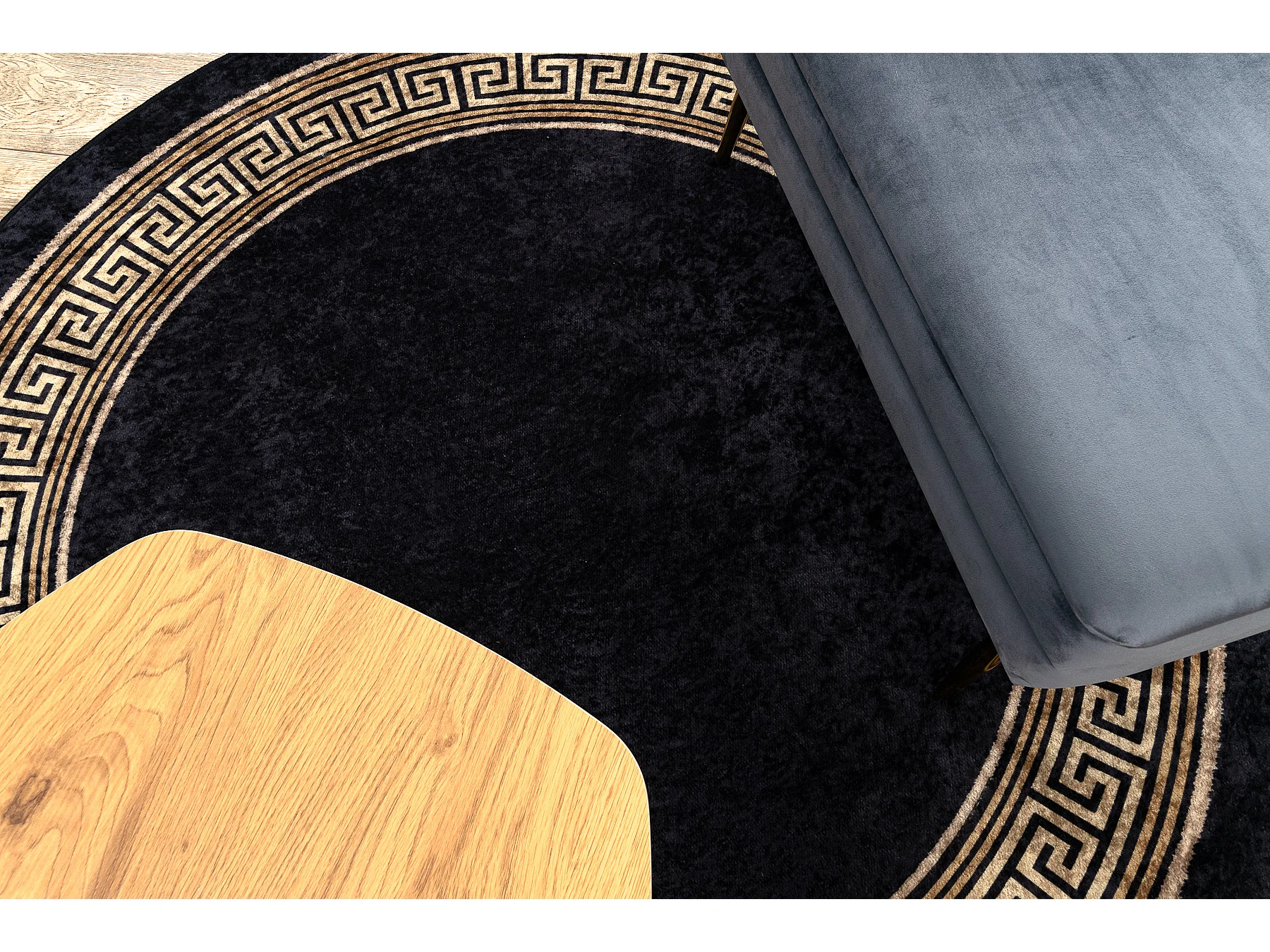 Tapis lavable MIRO 51360.802 cercle Grec antidérapant - noir / or cercle 80 cm