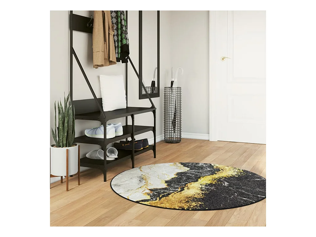 Tapis lavable noir et doré ø 120 cm antidérapant