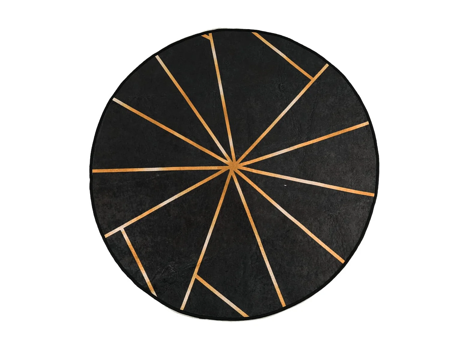 Tapis lavable noir et doré Ø 120 cm antidérapant QBH80551