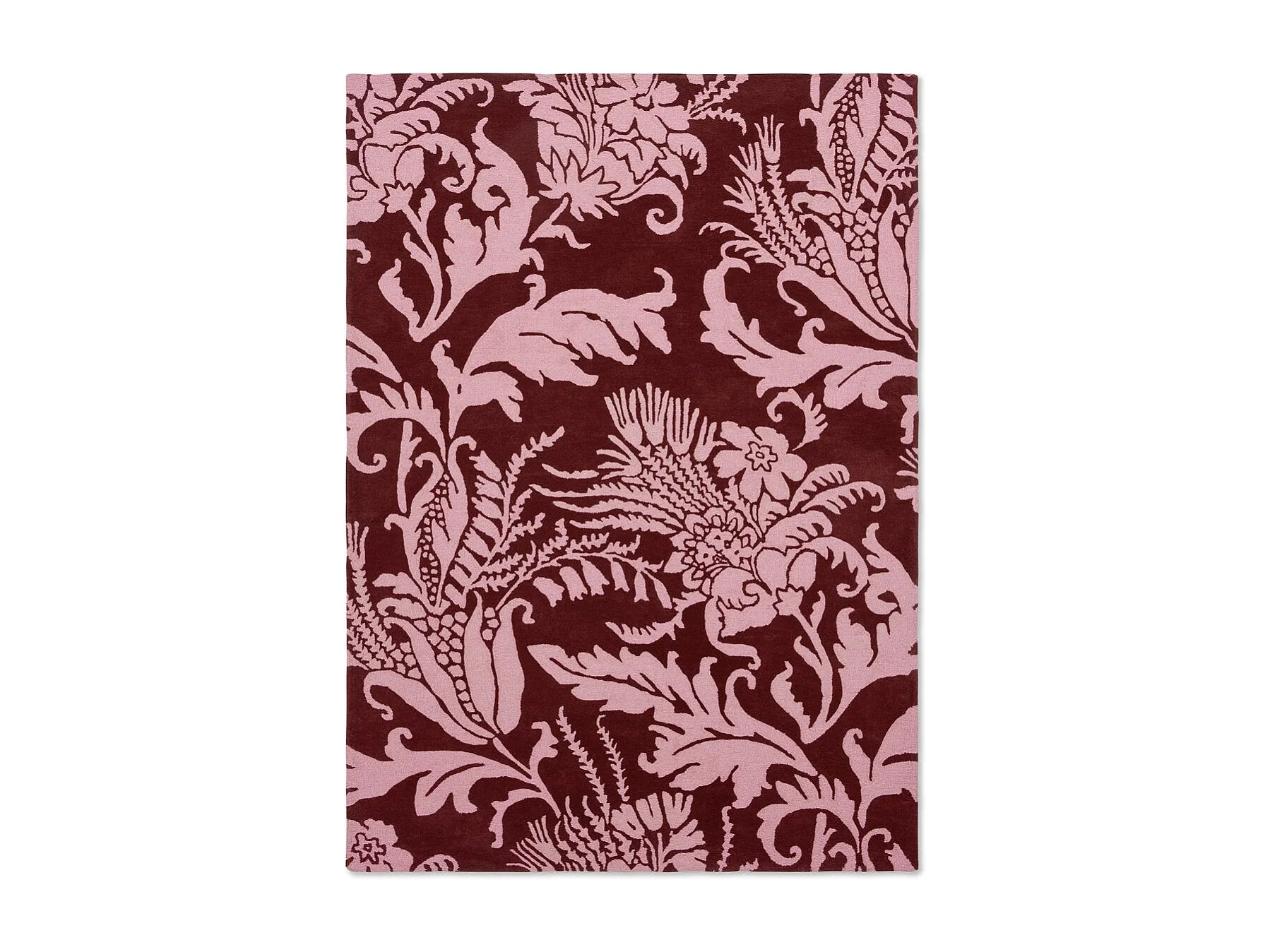 tapis chambre 200x280 fait à la main en laine bordeaux et rose motif floral