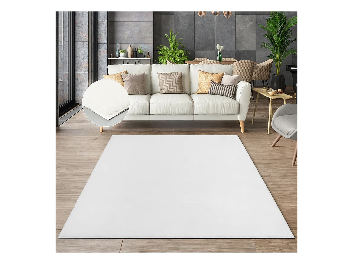 Tapis moderne fourrure chaud douillet lavable - Blanc - 160 x 220 cm - COSY