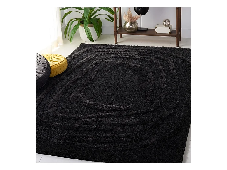 Tapis shaggy à poils longs moderne noir et crème 160x230