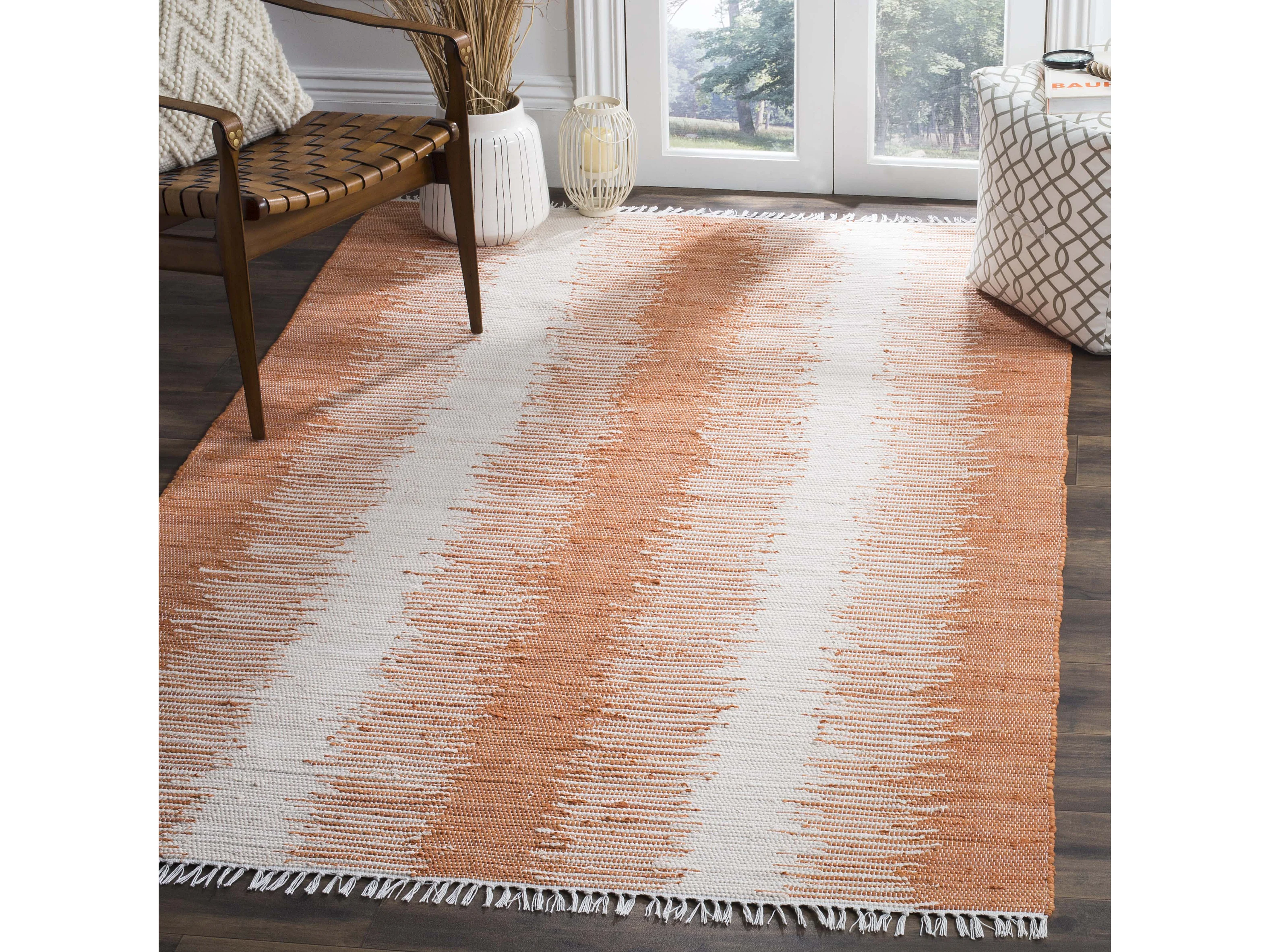 Tapis en coton rouille à franges